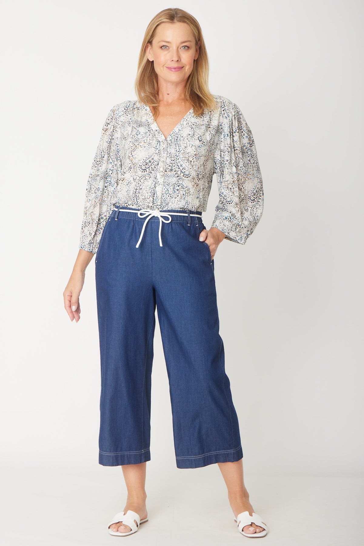 Wide Leg 7/8 Pant - Dark Denim - 31500
