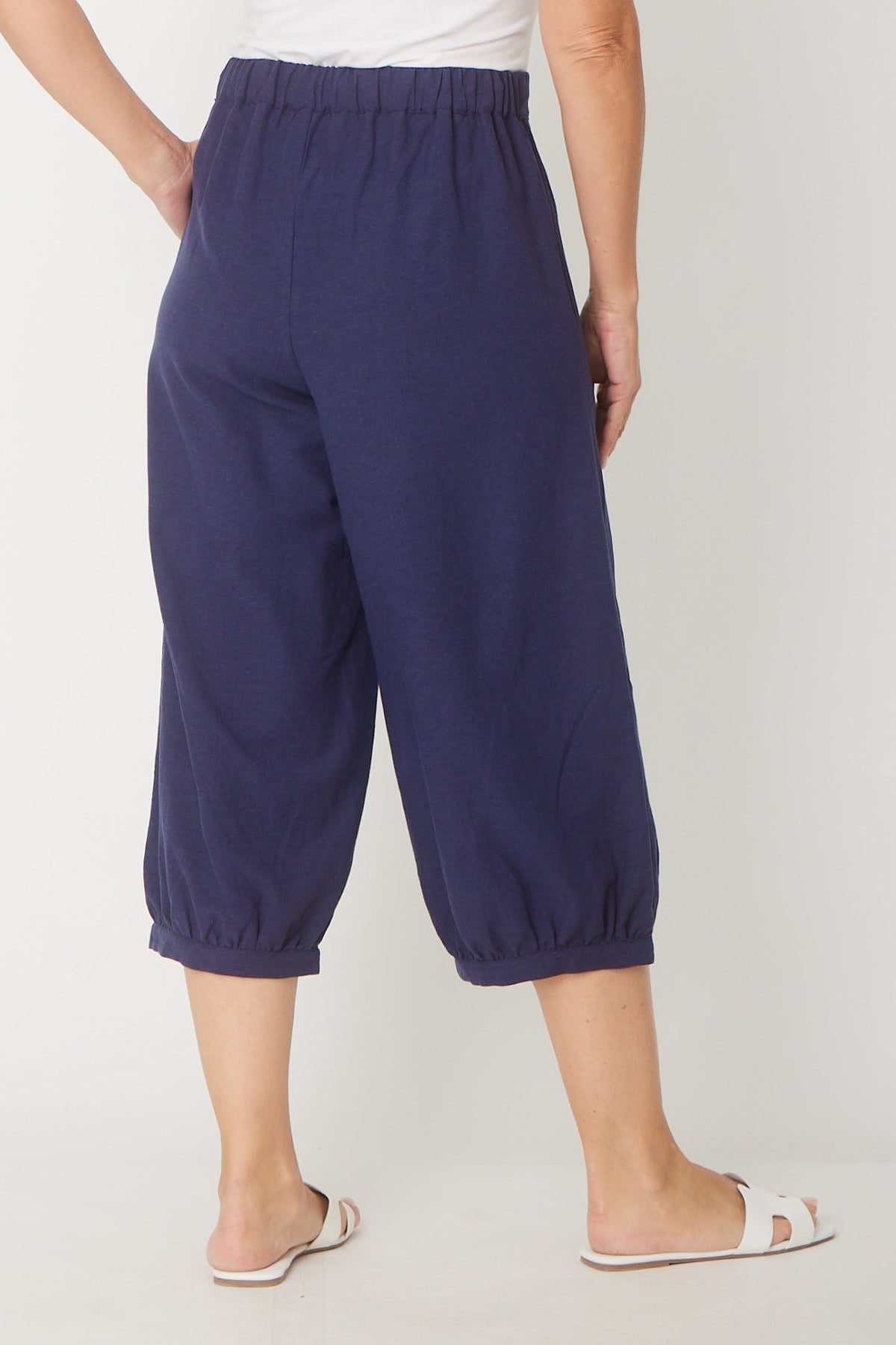 Experience effortless style and comfort with the Anya Pleat Pocket Pant. Crafted from a breathable linen blend, these 3/4 balloon leg pants offer a relaxed fit with an elastic waist and drawstring for easy adjustment. Designed to fit true to your natural waist, they combine casual ease with chic detailing like pleats and practical pockets, perfect for your everyday wardrobe.