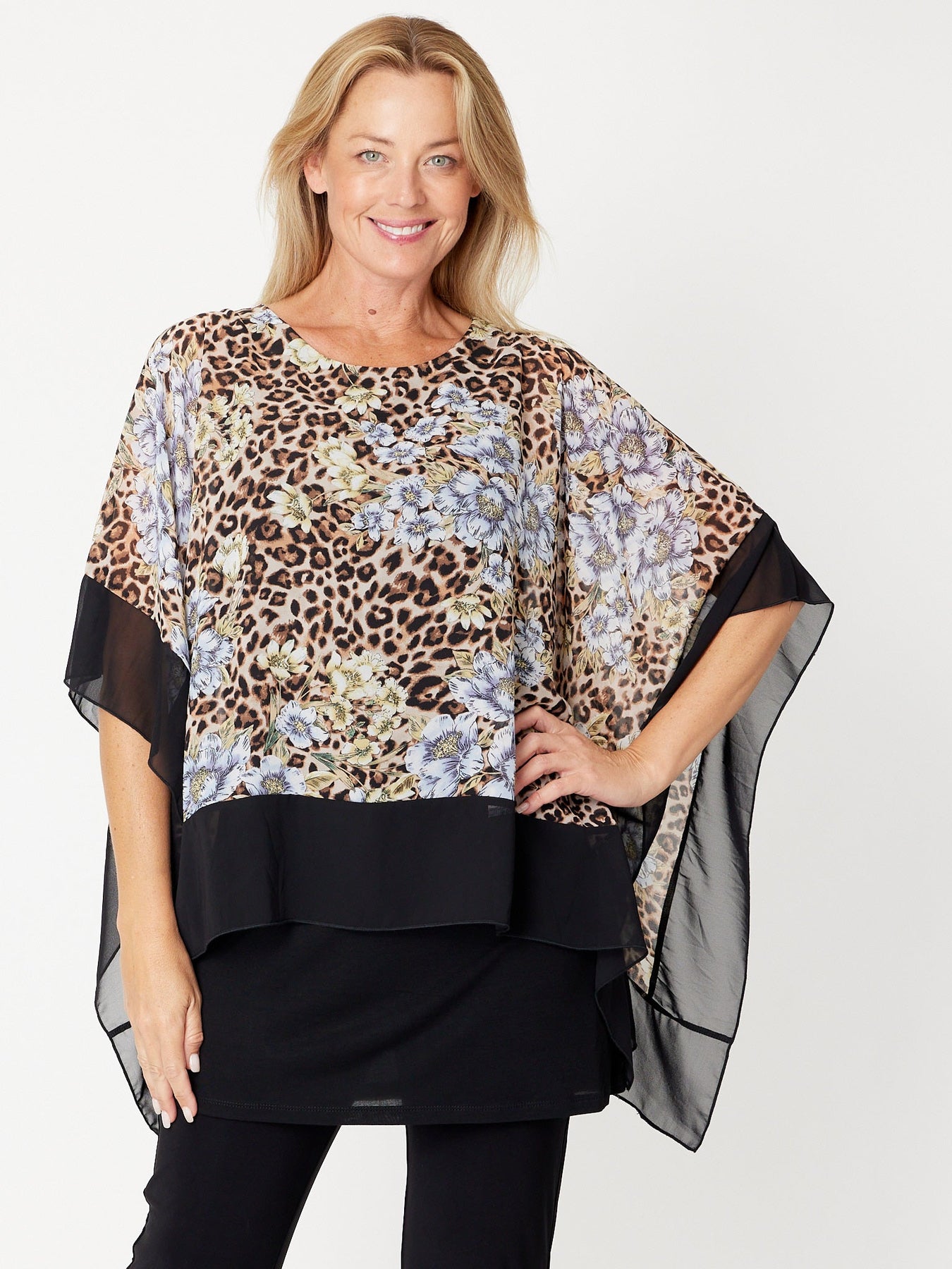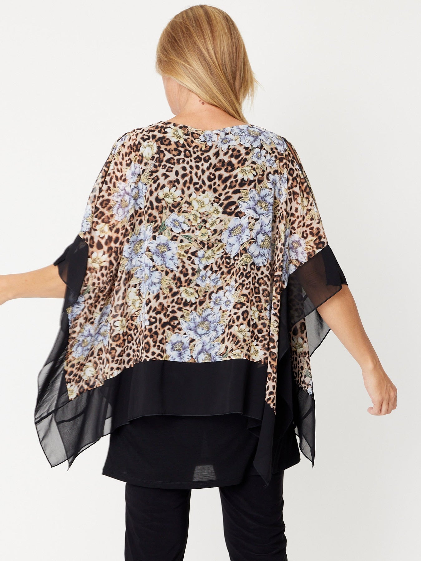 Avery Chiffon Kimono Top - Animal Black -31372