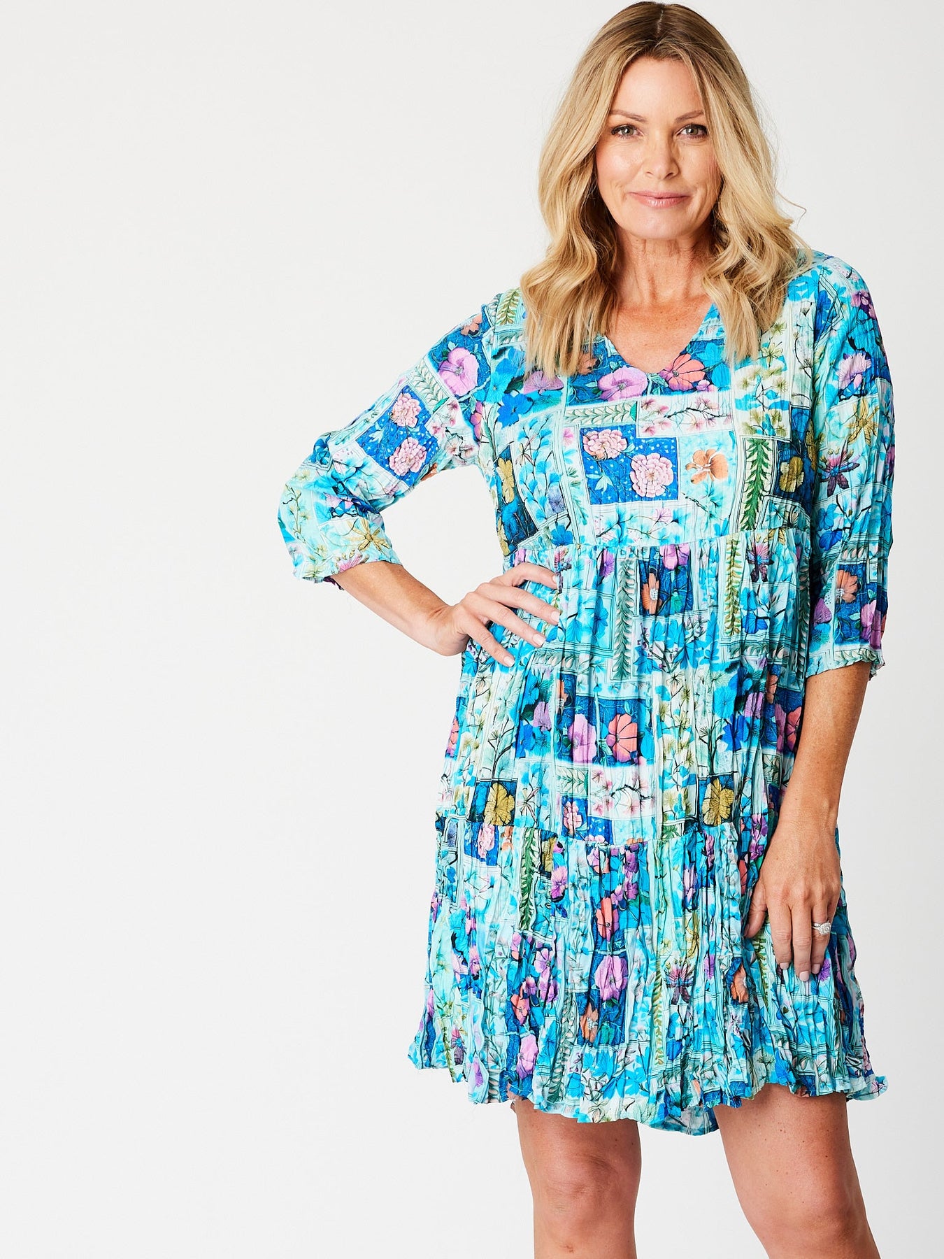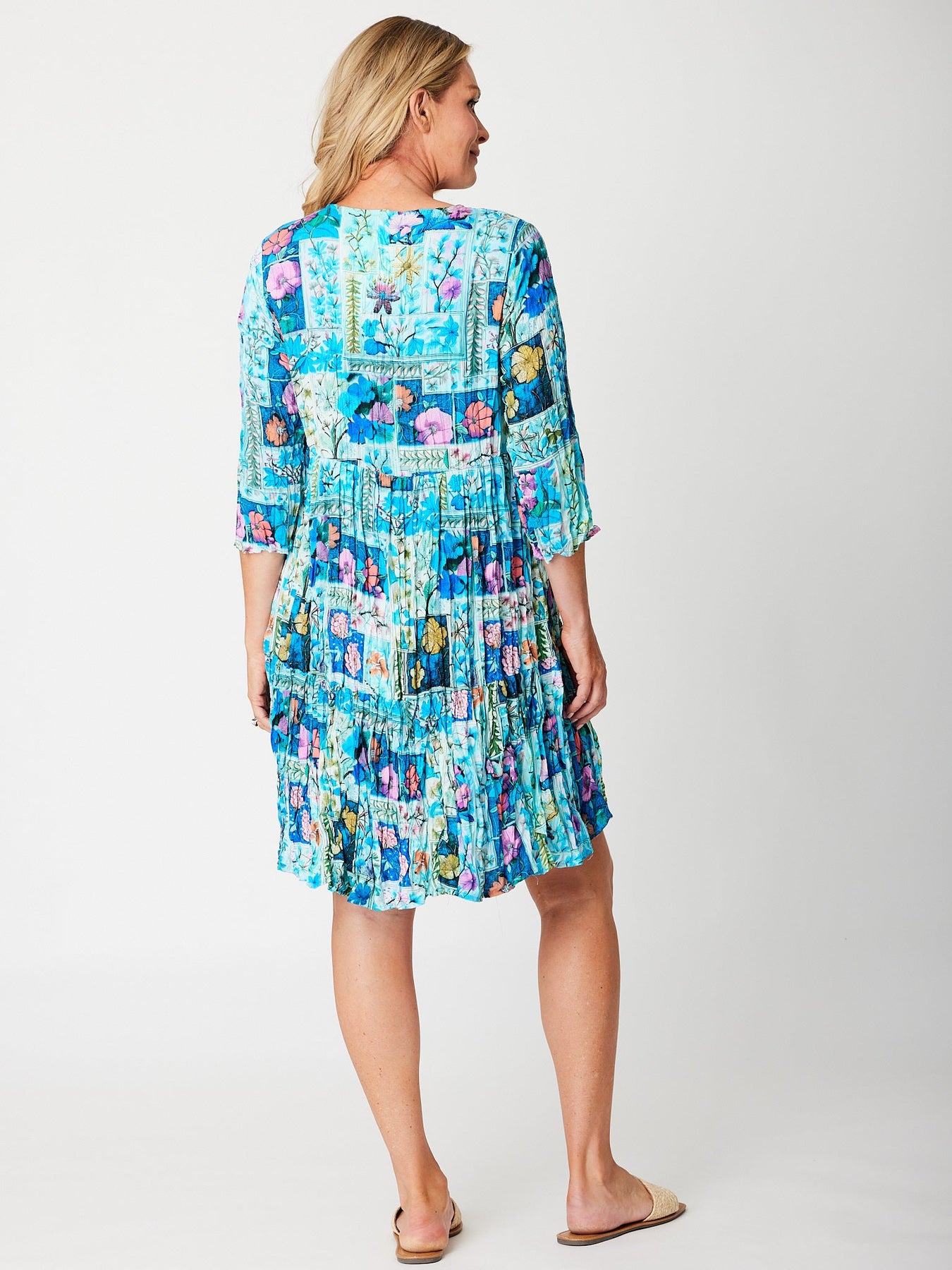 This crinkle rayon dress features a flattering scoop neckline and comfortable 3/4 sleeves, perfect for transitional weather. Its knee-length cut offers a timeless silhouette that suits any occasion, while the lightweight, textured fabric ensures breathable comfort all day long. Effortlessly stylish, it’s ideal for adding a touch of elegance and ease to your wardrobe.