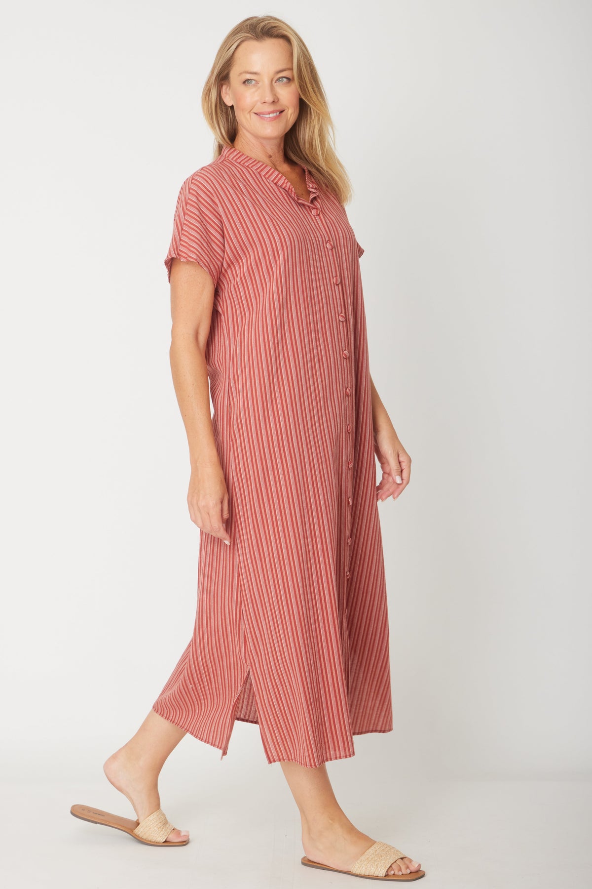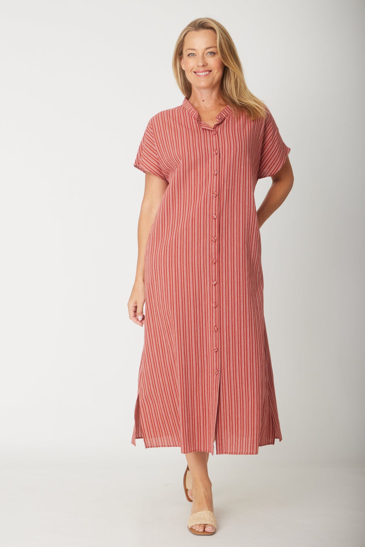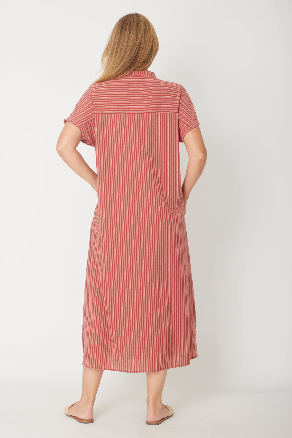Belle Striped Shirtmaker Dress - Russet - 31064
