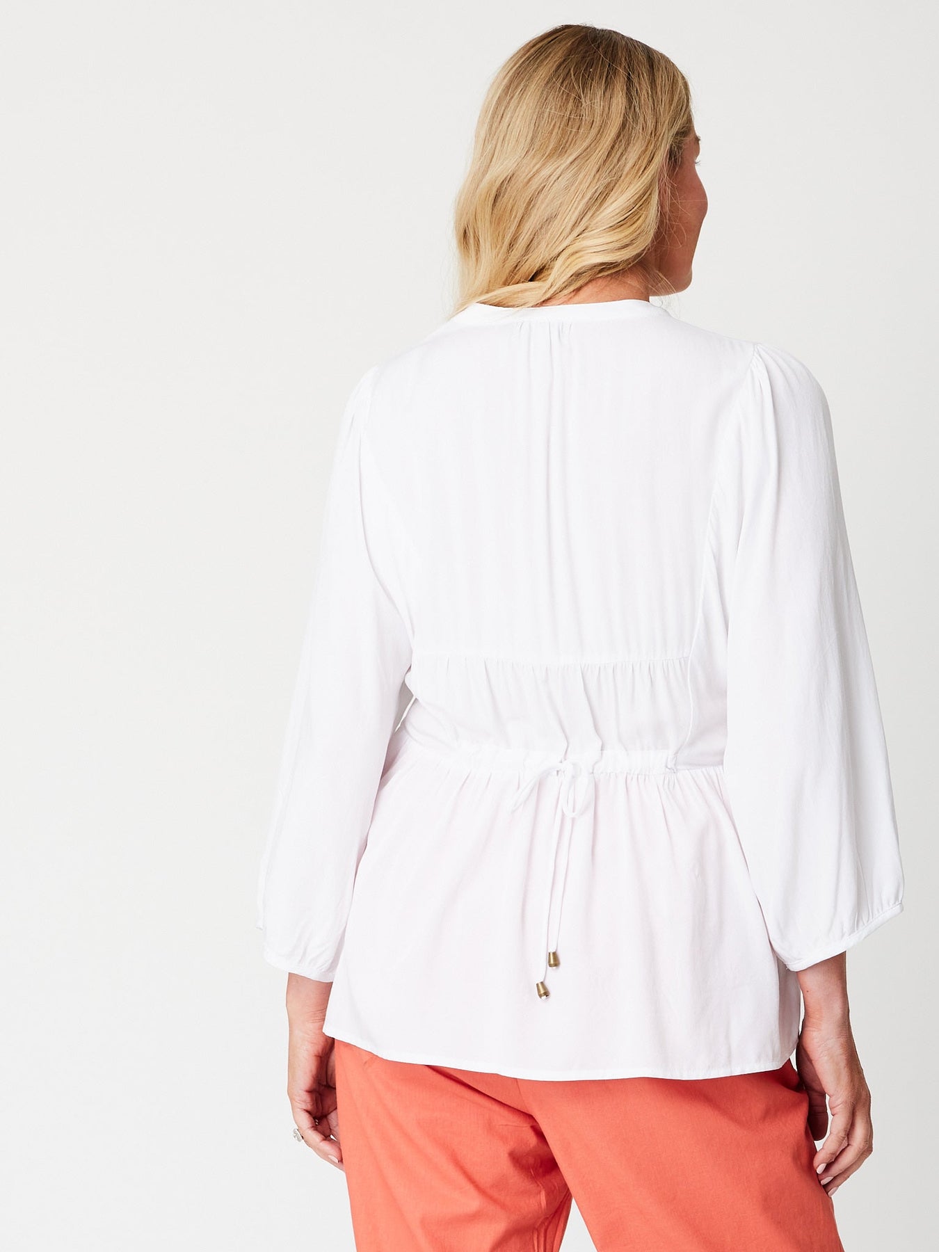 Embrace effortless elegance with the Bombay Beauty Core Top. Crafted from luxuriously soft rayon, this feminine piece features a flattering baby doll silhouette with relaxed balloon sleeves that move beautifully. The adjustable self-tie neckline offers versatility—wear it open for a casual vibe or tied up for a polished look. Perfect for layering or wearing solo, this cool-to-wear top transitions seamlessly from day to night.