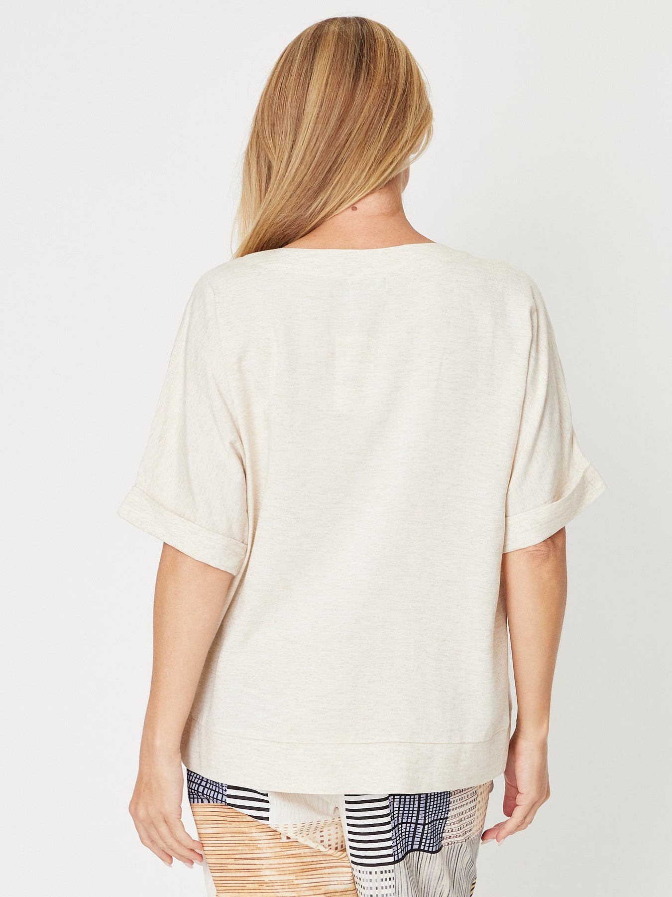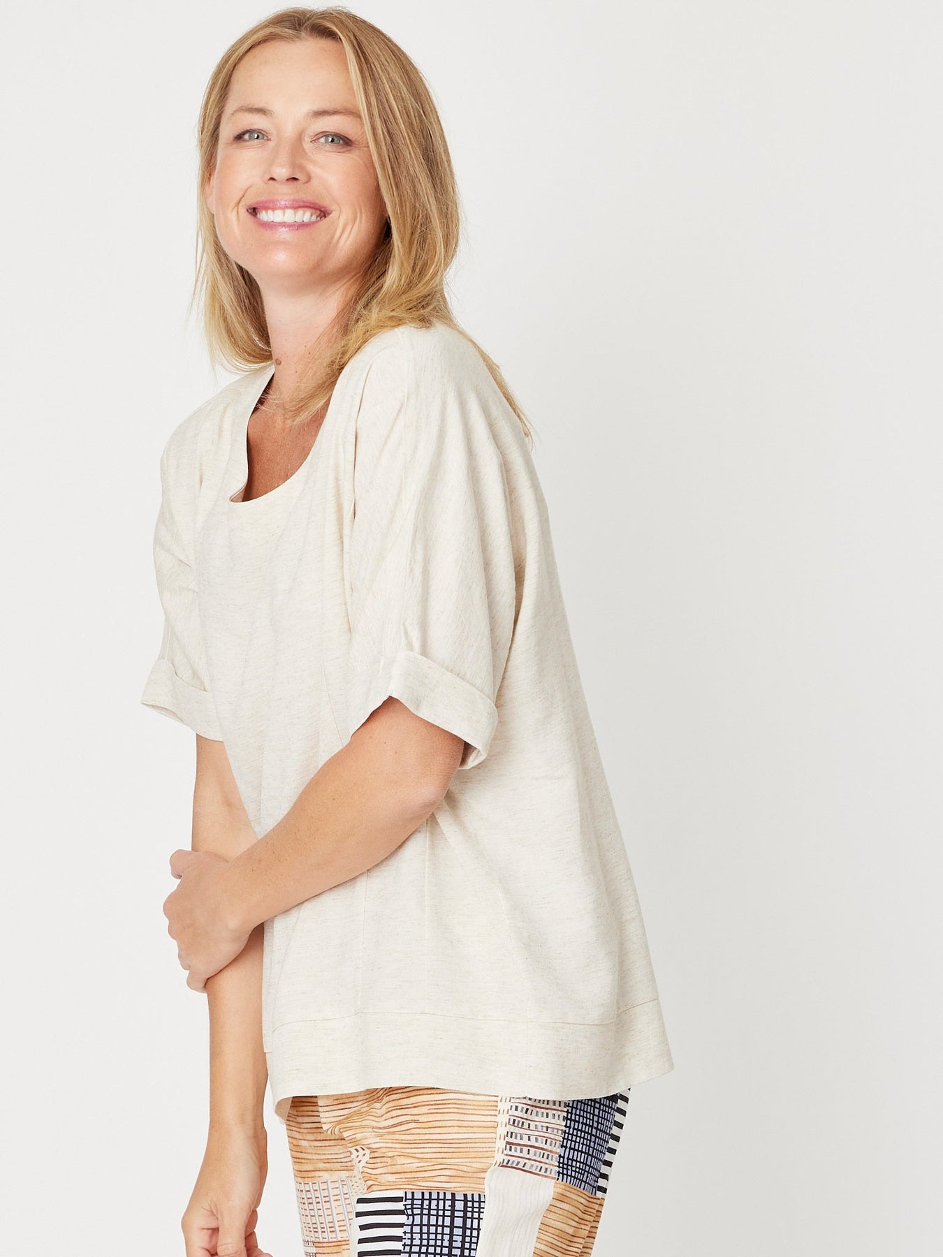 Experience effortless style with the Linen Shores Top in Sand. Crafted from a breathable linen blend, this relaxed longer-line top features a flattering scoop neck and comfortable extended short sleeves, perfect for warm days. Its airy fabric and easy fit make it an ideal choice for casual outings or layering, combining comfort and timeless elegance in one versatile piece.