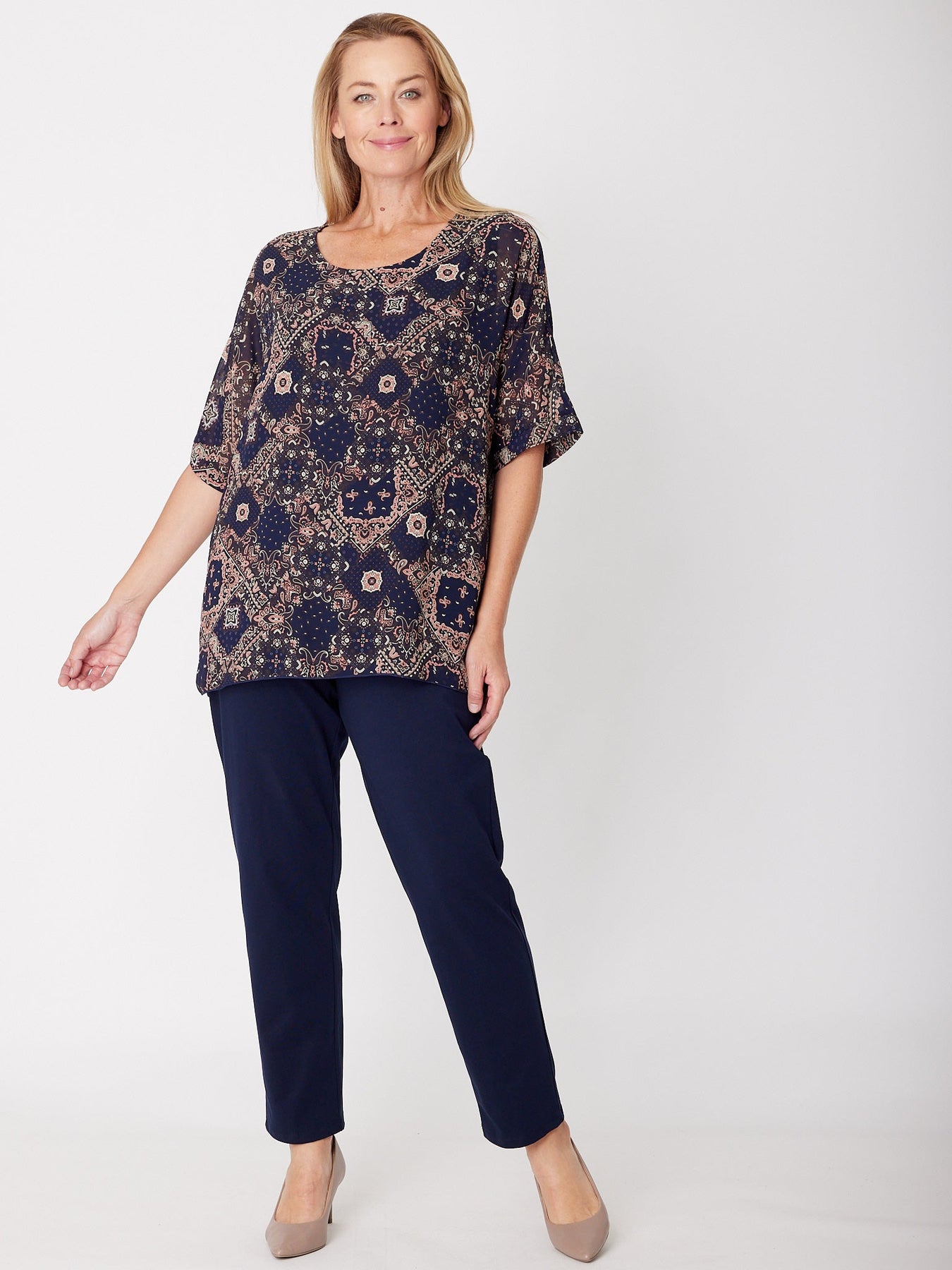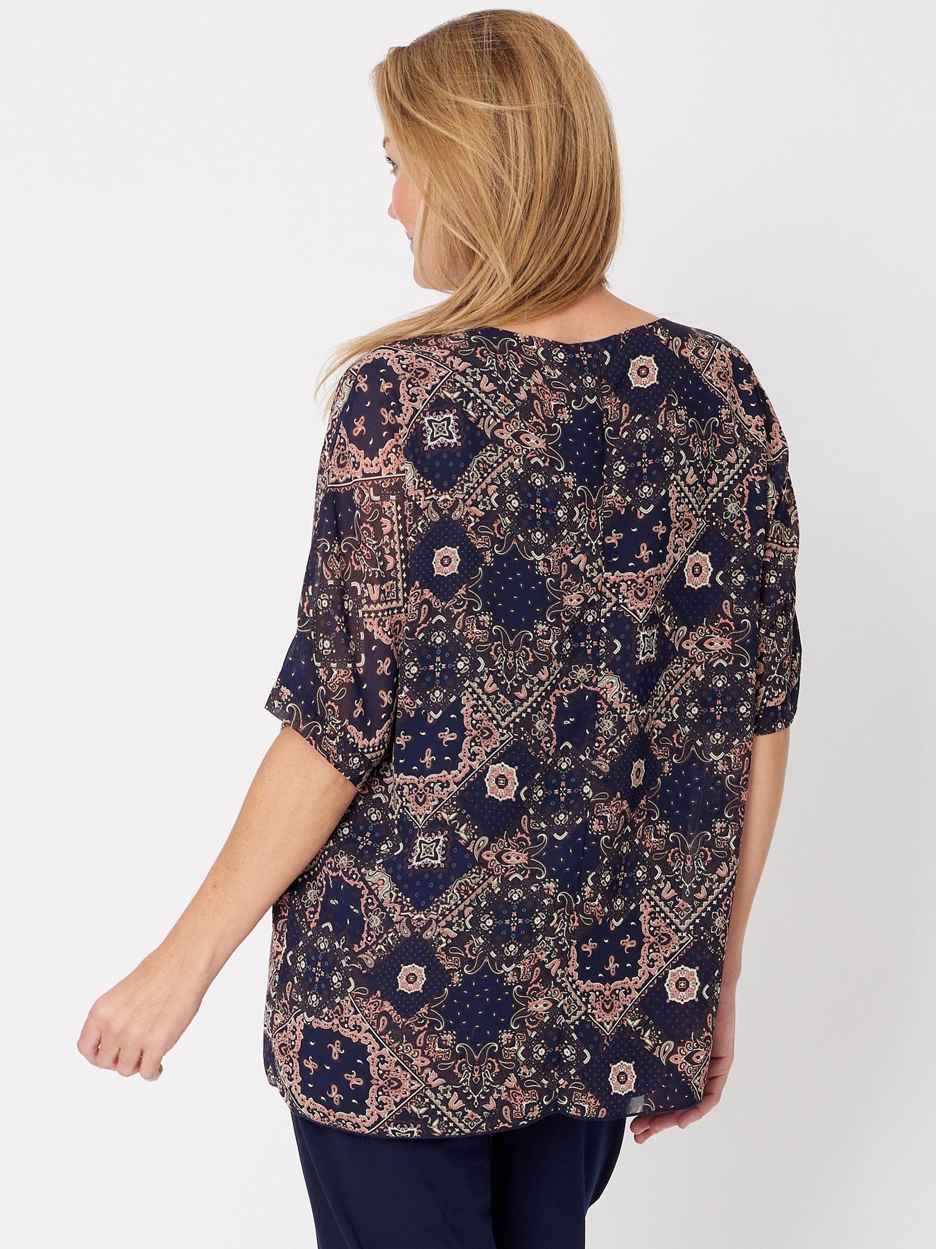 Asha Chiffon Overlay Top - Navy Print - 31367