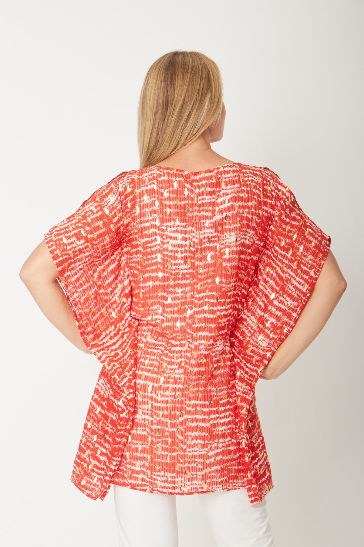 Elevate your wardrobe with the Asha Chiffon Tunic, featuring a beautiful red and white chiffon fabric accented by a stunning foil print. This lightweight kaftan-style top offers effortless elegance and comfort, enhanced by a soft rayon lining that feels gentle against the skin. Perfect for adding a touch of sophistication to any outfit, it blends style and ease for versatile wear throughout the seasons. Perfect to the festive season.