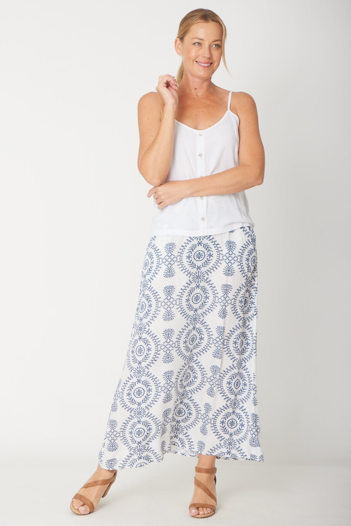 Elevate your wardrobe with this effortlessly chic Bandana Midi Skirt. Crafted from cool rayon with a fresh print design, this piece offers the perfect balance of comfort and style. The flattering A-line silhouette skims your figure beautifully, while the elastic back waistband ensures all-day comfort without compromising on fit. A crisp flat front adds polished sophistication, and the fully lined construction provides confidence and durability. Versatile enough for casual outings or dressed-up occasions, this skirt is a must-have staple for any collection.