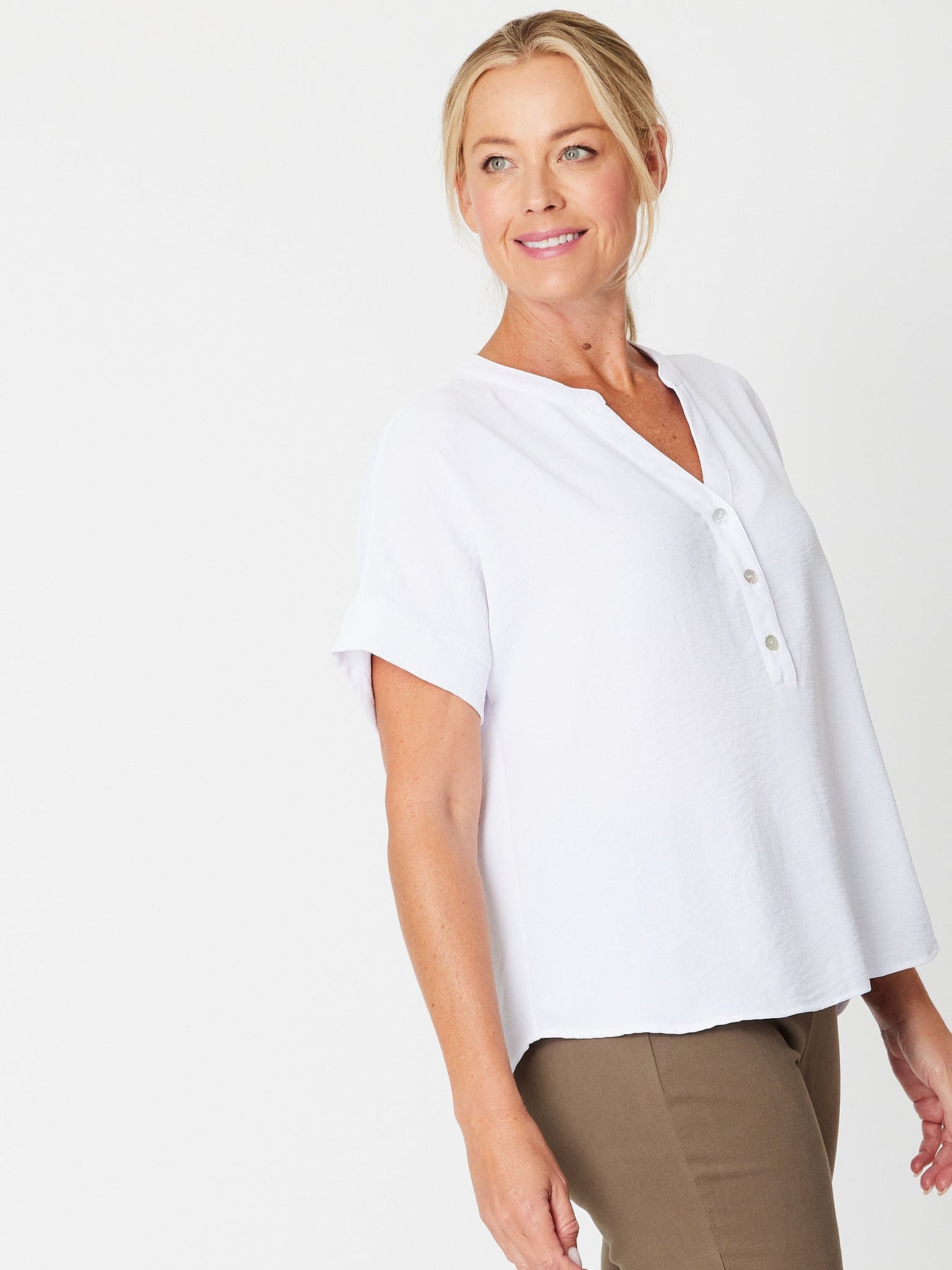 Elevate your wardrobe with this versatile Core Top. Crafted from innovative mechanical stretch fabric, it moves with you for all-day comfort and confidence. The classic nehru collar and short sleeves deliver timeless style, while the 1/2 button-through front makes it effortlessly adaptable—wear it polished for the office or relaxed for weekend outings. Perfect for those who demand both sophistication and practicality in their everyday essentials.