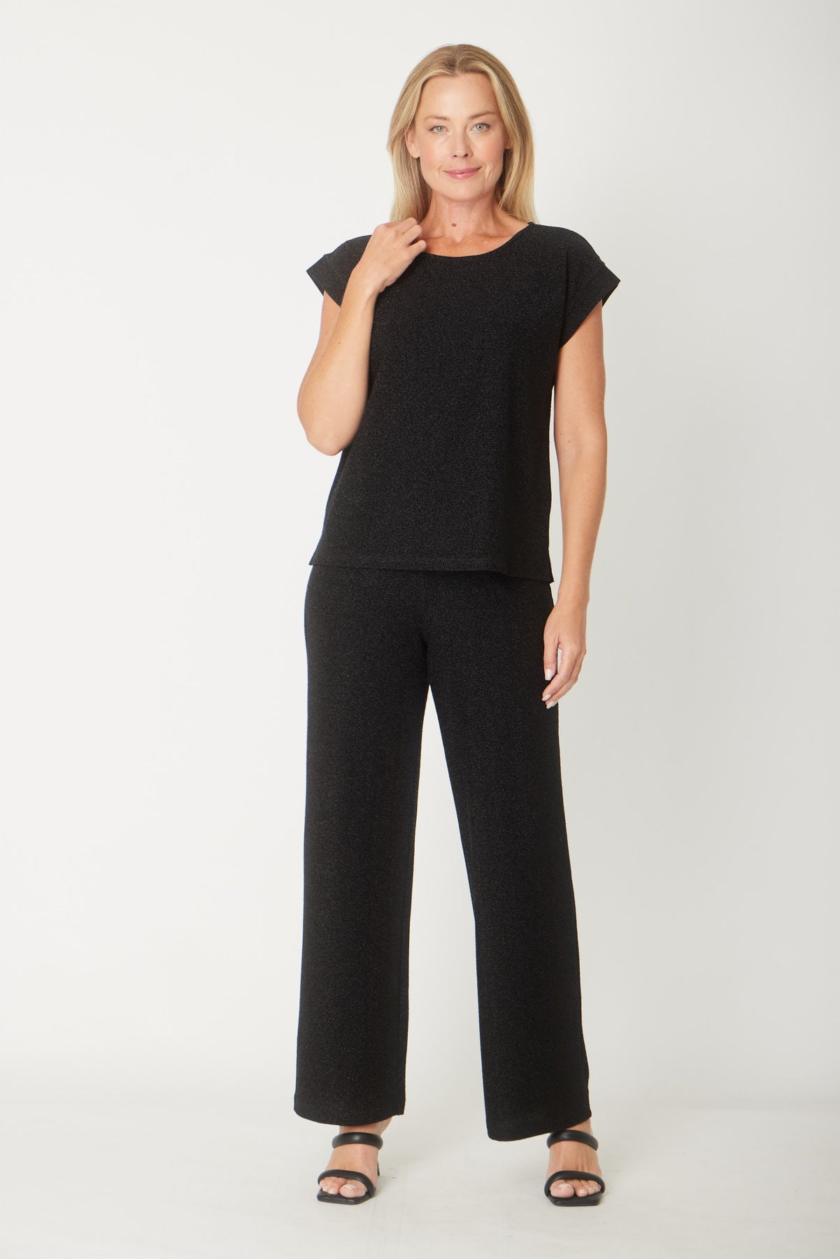 Elevate your wardrobe with the Lurex Lux Pant. These stretch lurex textured wide-leg pants offer both comfort and a striking shimmer that catches the light beautifully. Designed for effortless style, they pull on easily, making them perfect for day-to-night wear. Wear them with the matching top, skirt, and jacket available on our site for a coordinated, high-fashion ensemble. Alternatively, dress down with a simple T-shirt and sneakers for a relaxed yet on-trend look that stands out. Perfect for those who want to make a statement without sacrificing comfort.