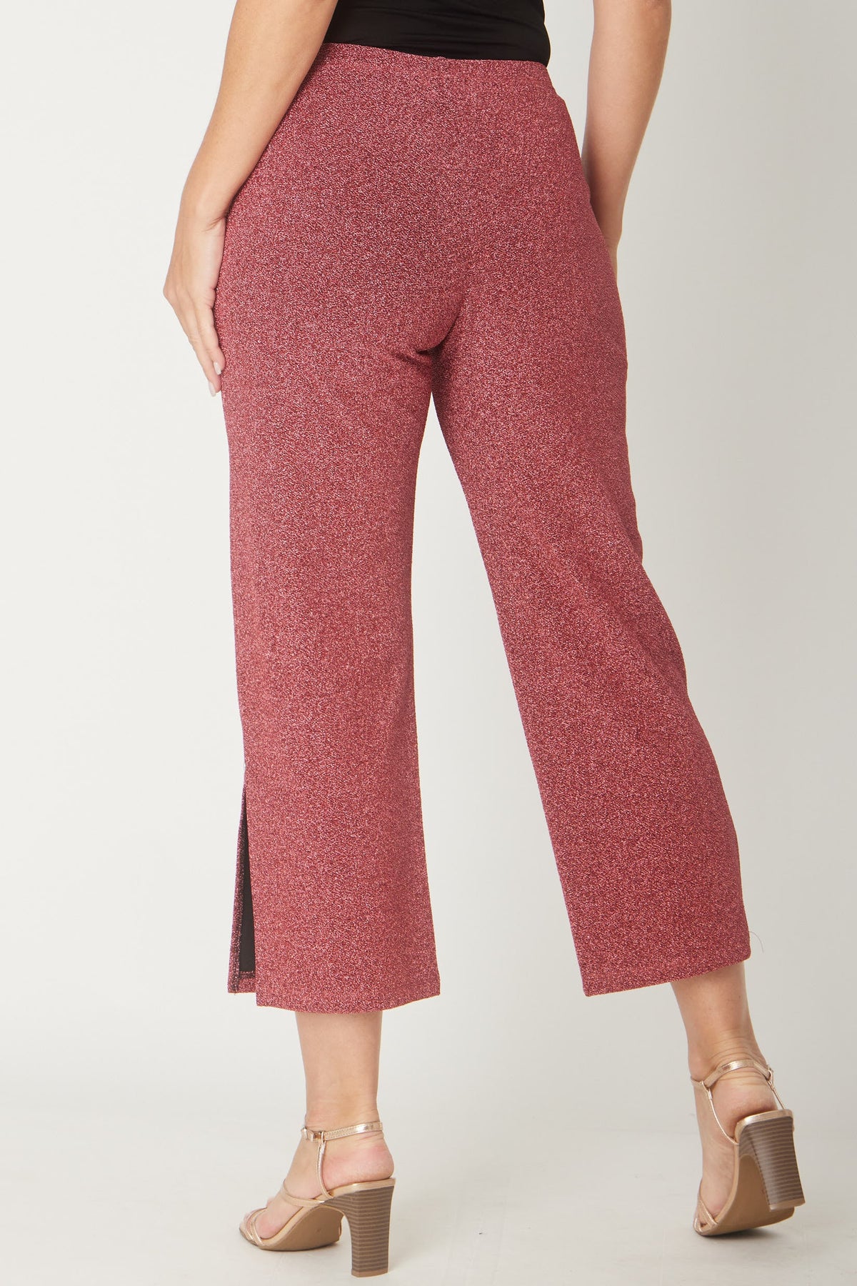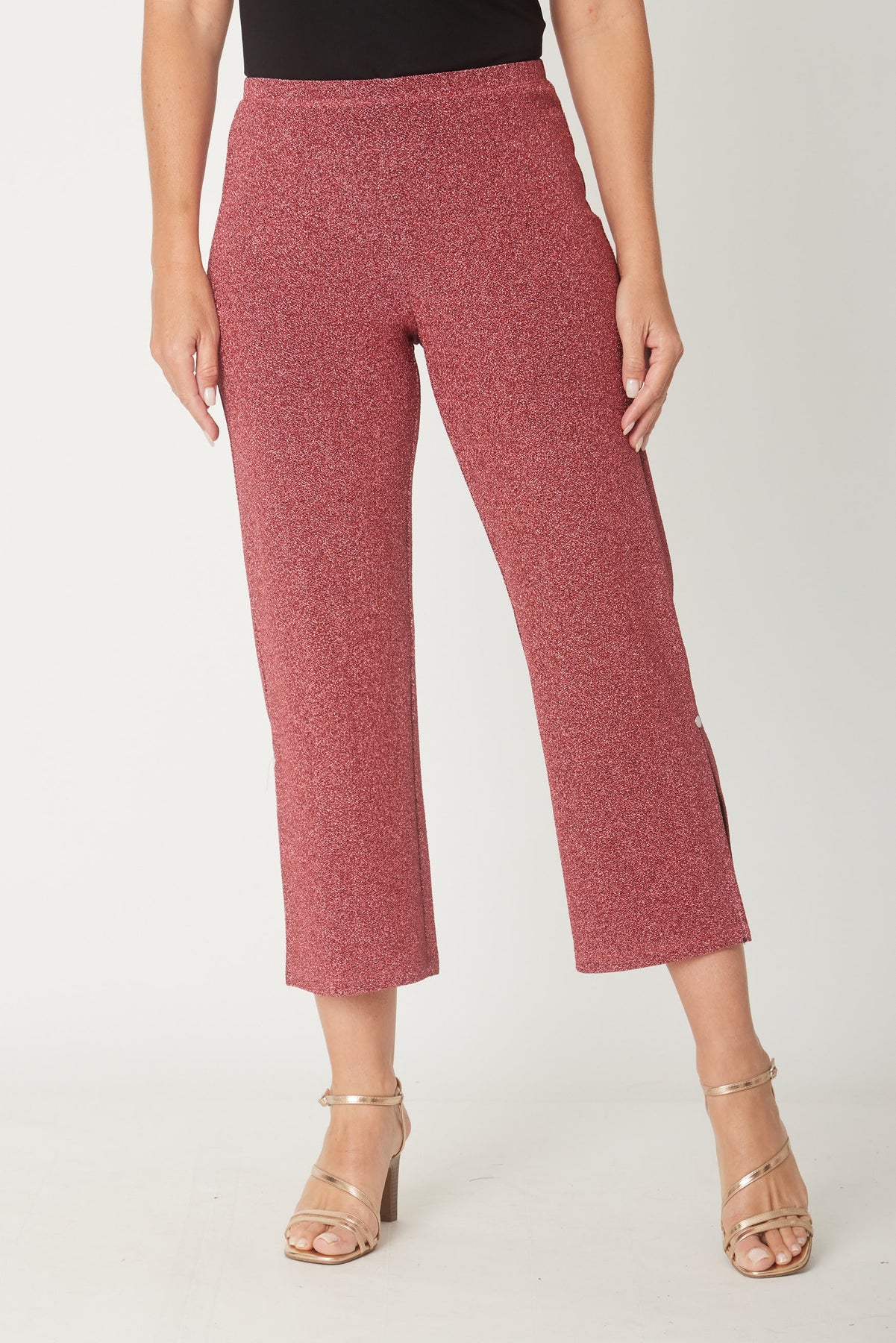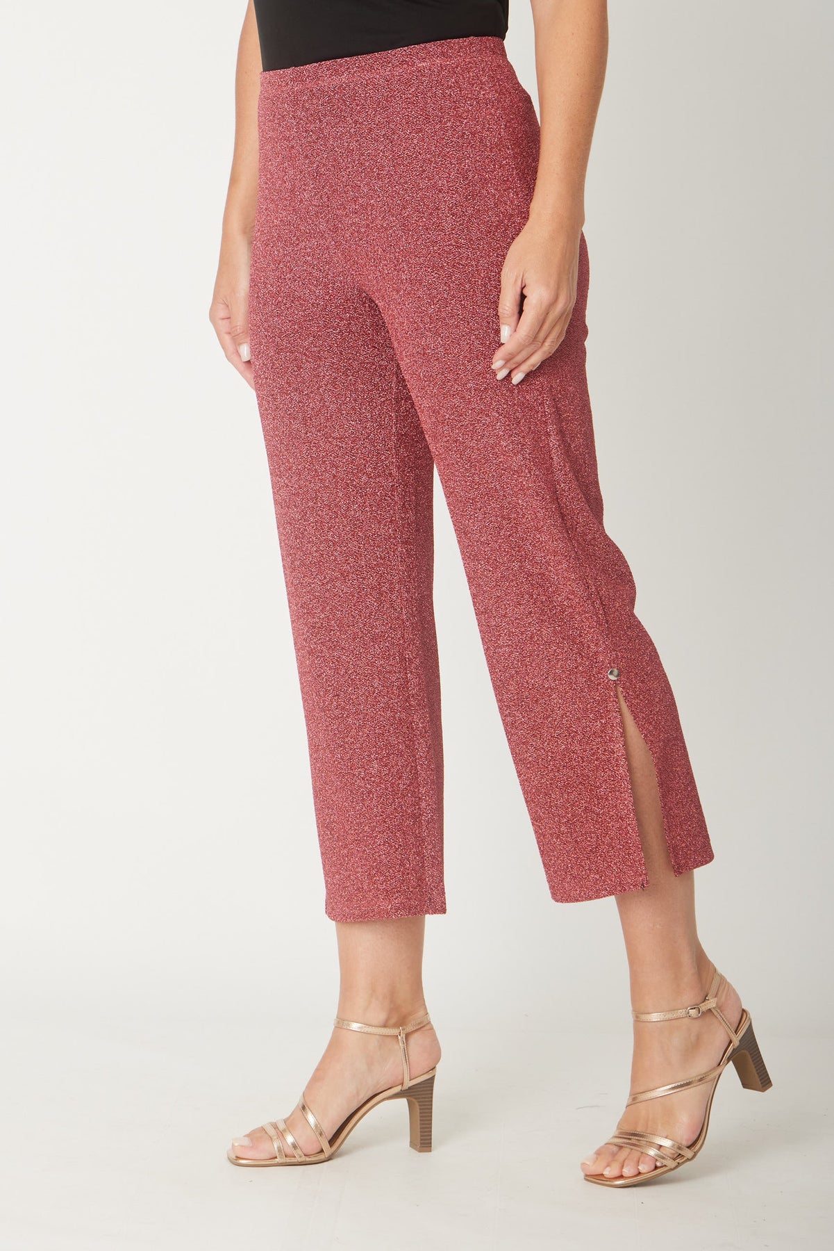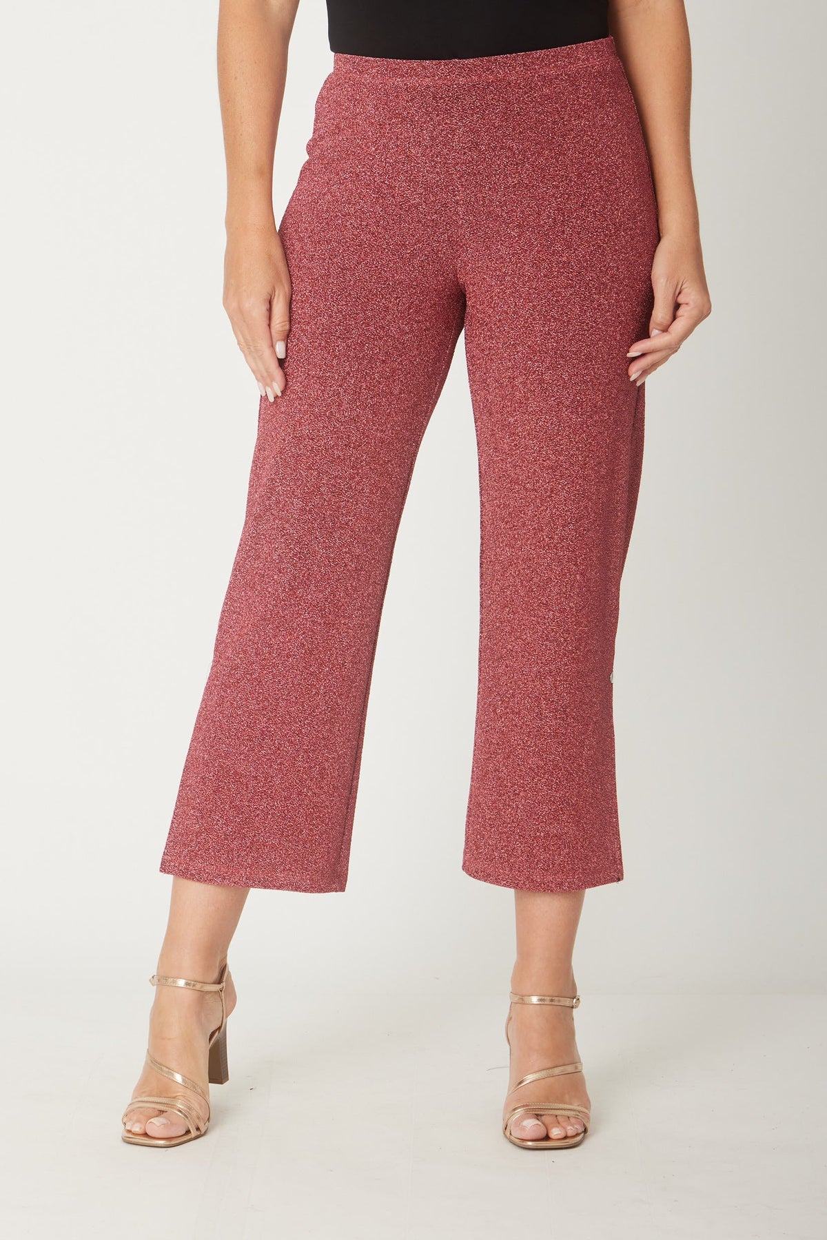 These Lurex Petties Pants offer a 7/8 length with a comfortable elastic waist, combining stretch fabric and subtle shimmer for effortless style. Perfect for dressing up or down, they create a chic look for any occasion. Pair them with the matching lurex Tarin top or jacket to complete a standout ensemble that radiates confidence and glamour.