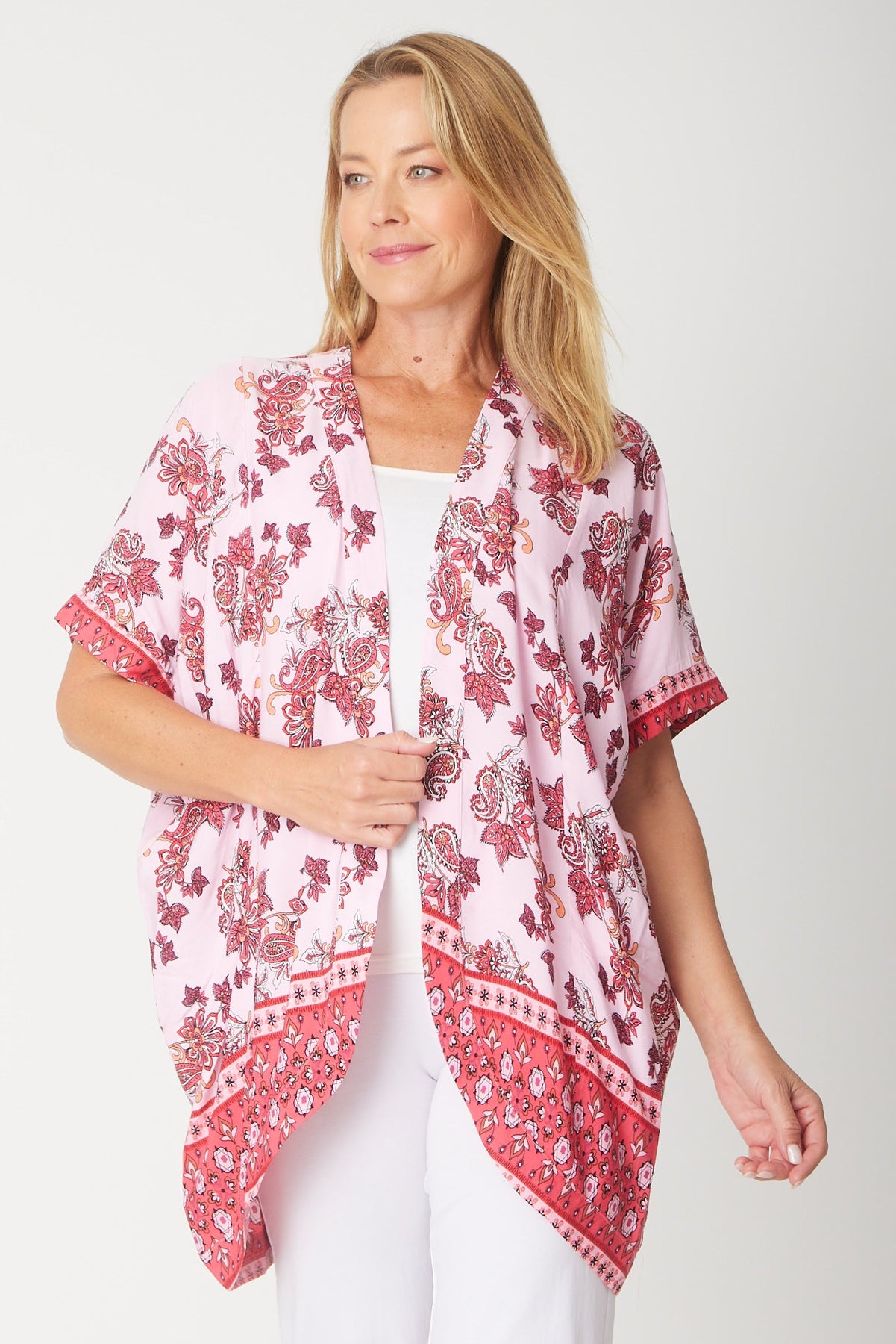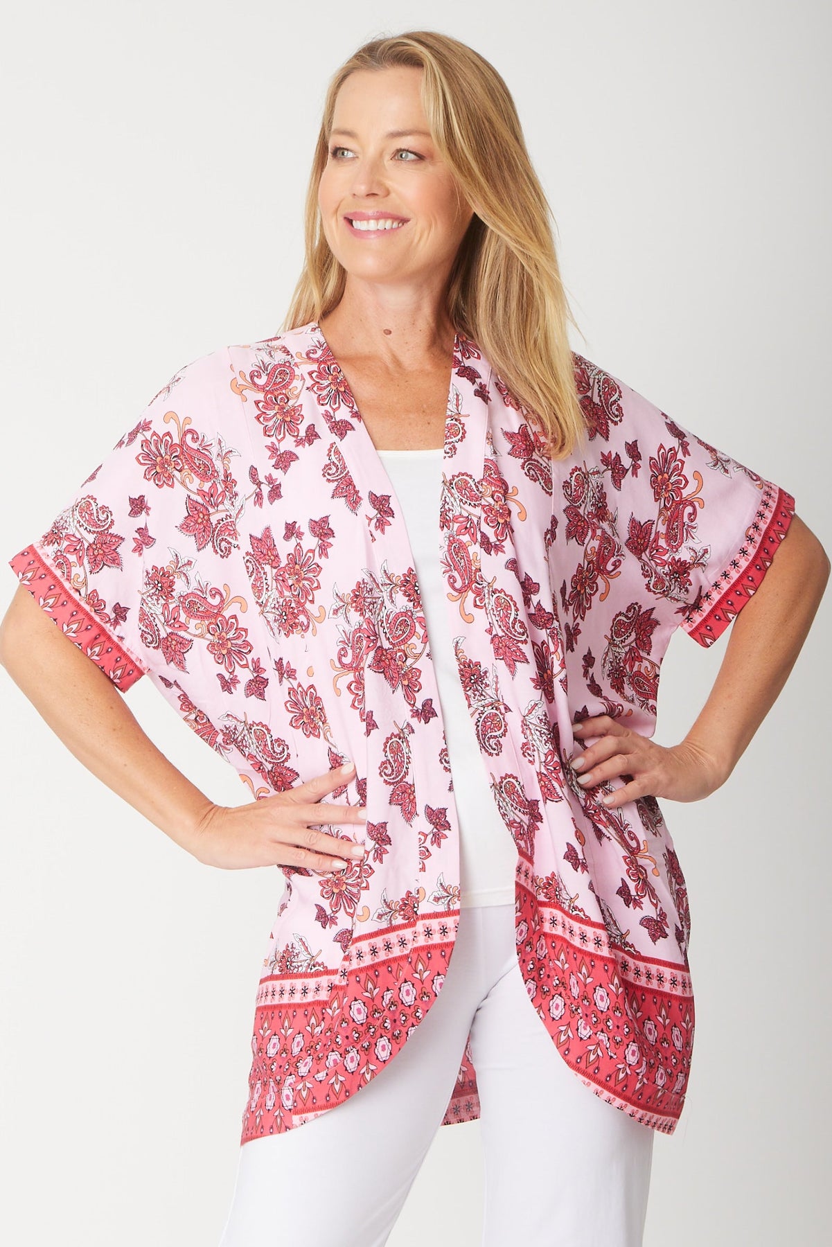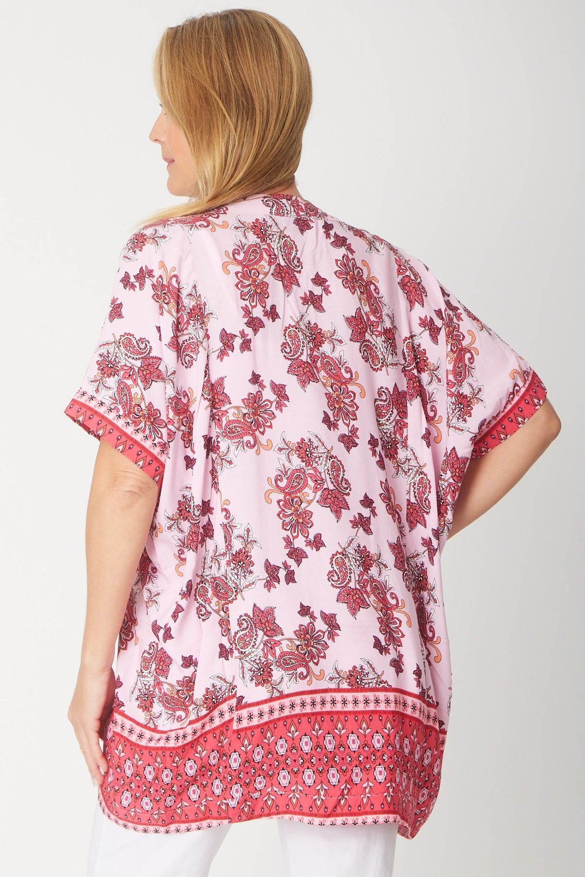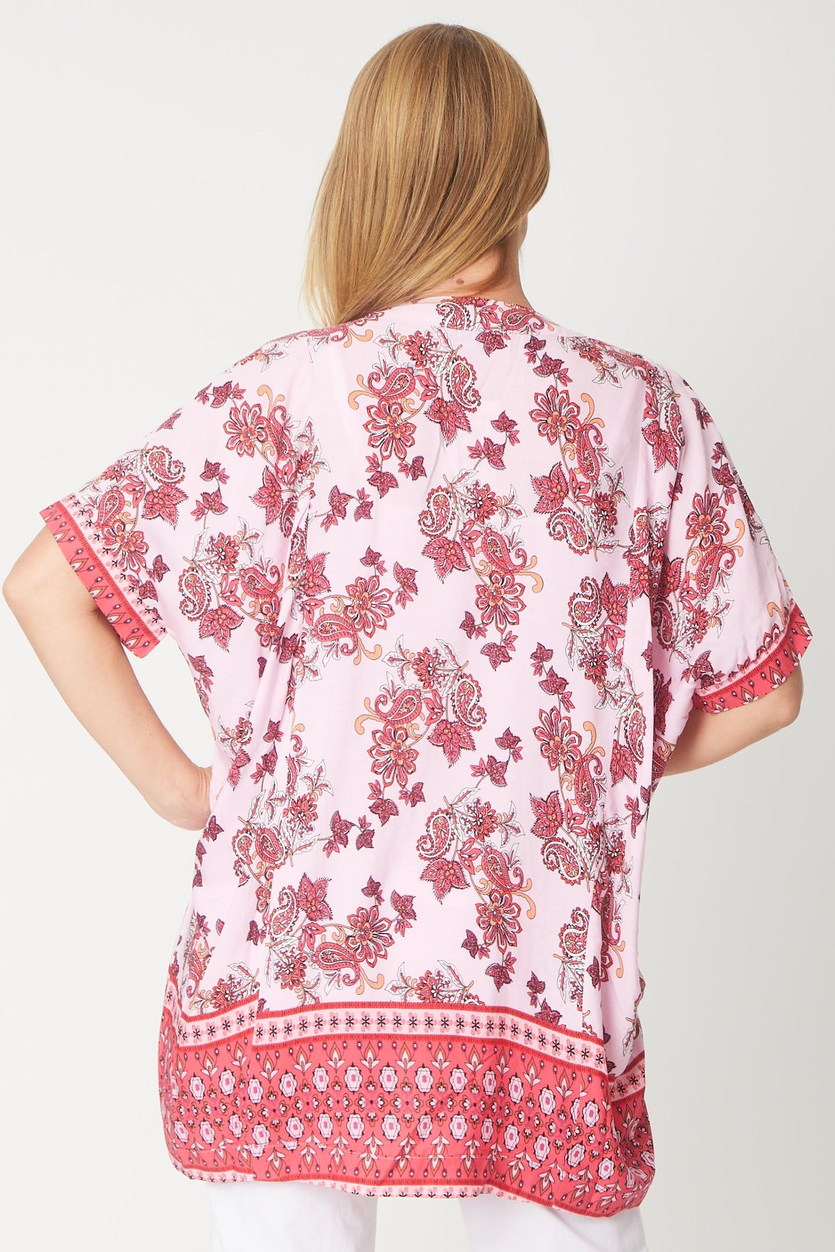 This rayon cover-up is an ideal choice for shielding your arms from the sun or adding a light layer against the chill. Its relaxed fit ensures comfort and ease, making it perfect for casual wear or layering over your favourite outfit. Lightweight and breathable, it’s a stylish way to stay comfortable while protecting your skin.  Buy you hip size.