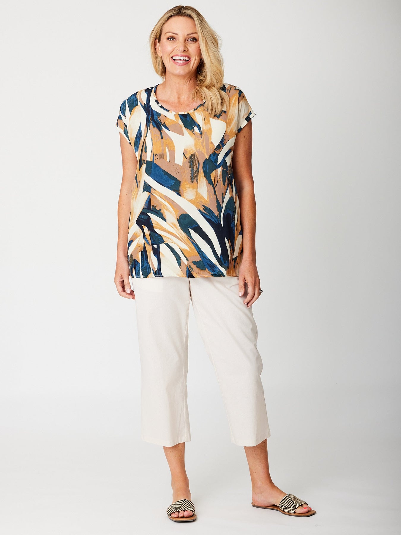 This Scoop Cap Top features a relaxed drop shoulder design and a longer line silhouette, offering effortless style and comfort. Available in muted tones of beige and inks, it’s perfect for adding a subtle yet sophisticated touch to your wardrobe. Versatile and easy to wear, this top pairs beautifully with jeans or skirts for a chic everyday look.