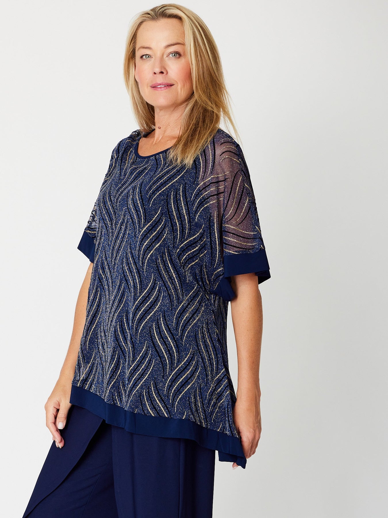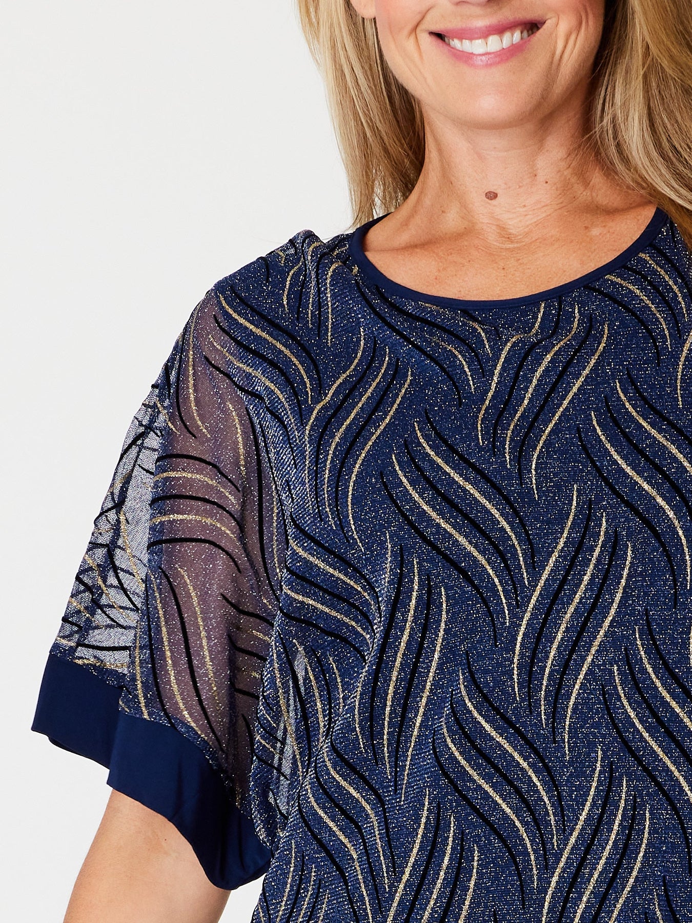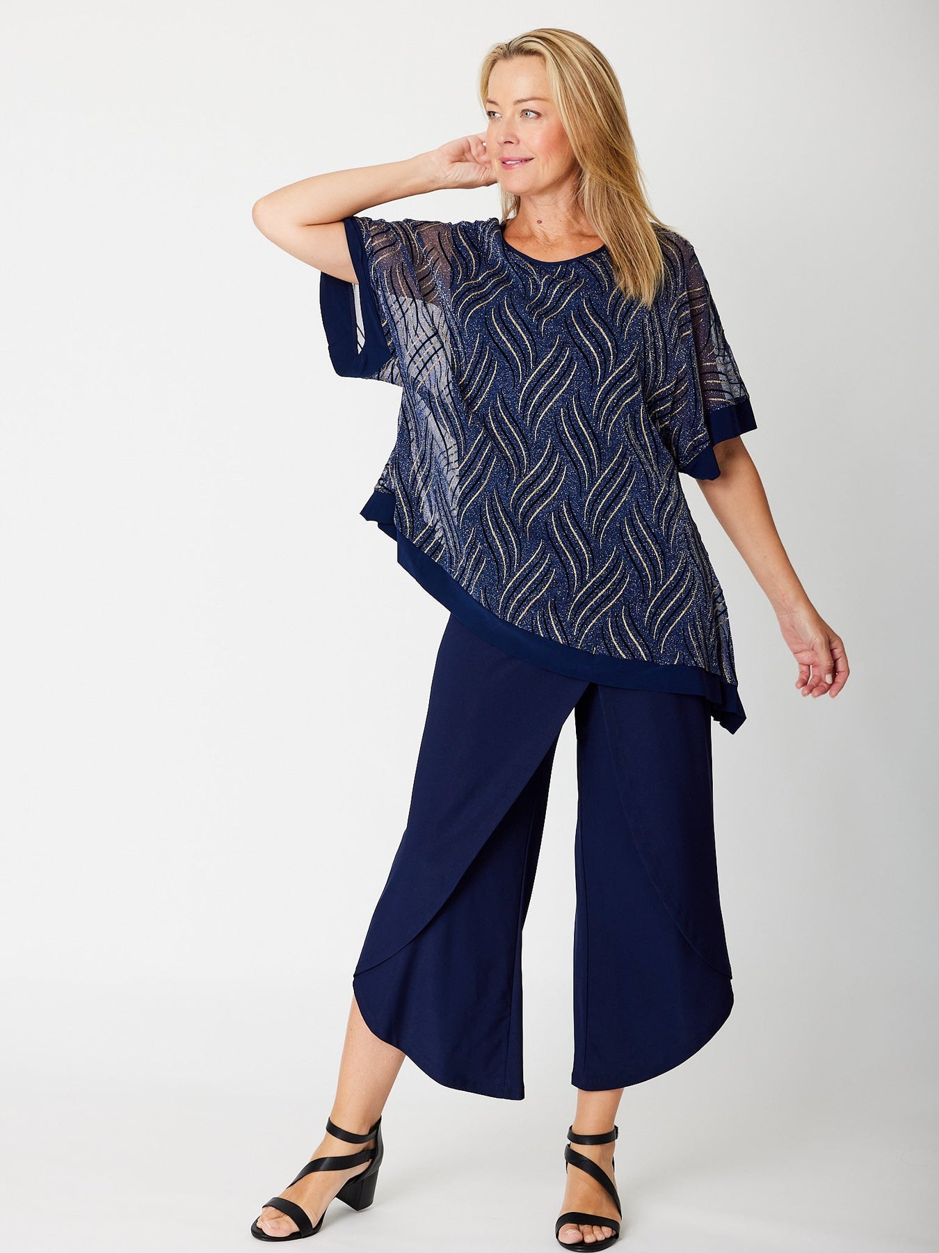 This  sequin cape top offers a relaxed, flattering fit that beautifully complements all body shapes, especially those fuller through the waist. Its flowing overlay provides comfort without sacrificing style, making it ideal for a glamorous yet effortless look. Pair it with palazzo trousers or a hilo skirt for an elegant evening, or dress it down with your favourite jeans or cottolene pants for a chic, trendy day outfit. Embrace simplicity with a touch of sparkle and elevate your wardrobe with this versatile statement piece.