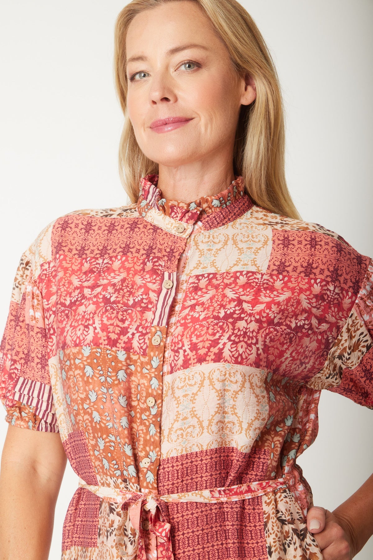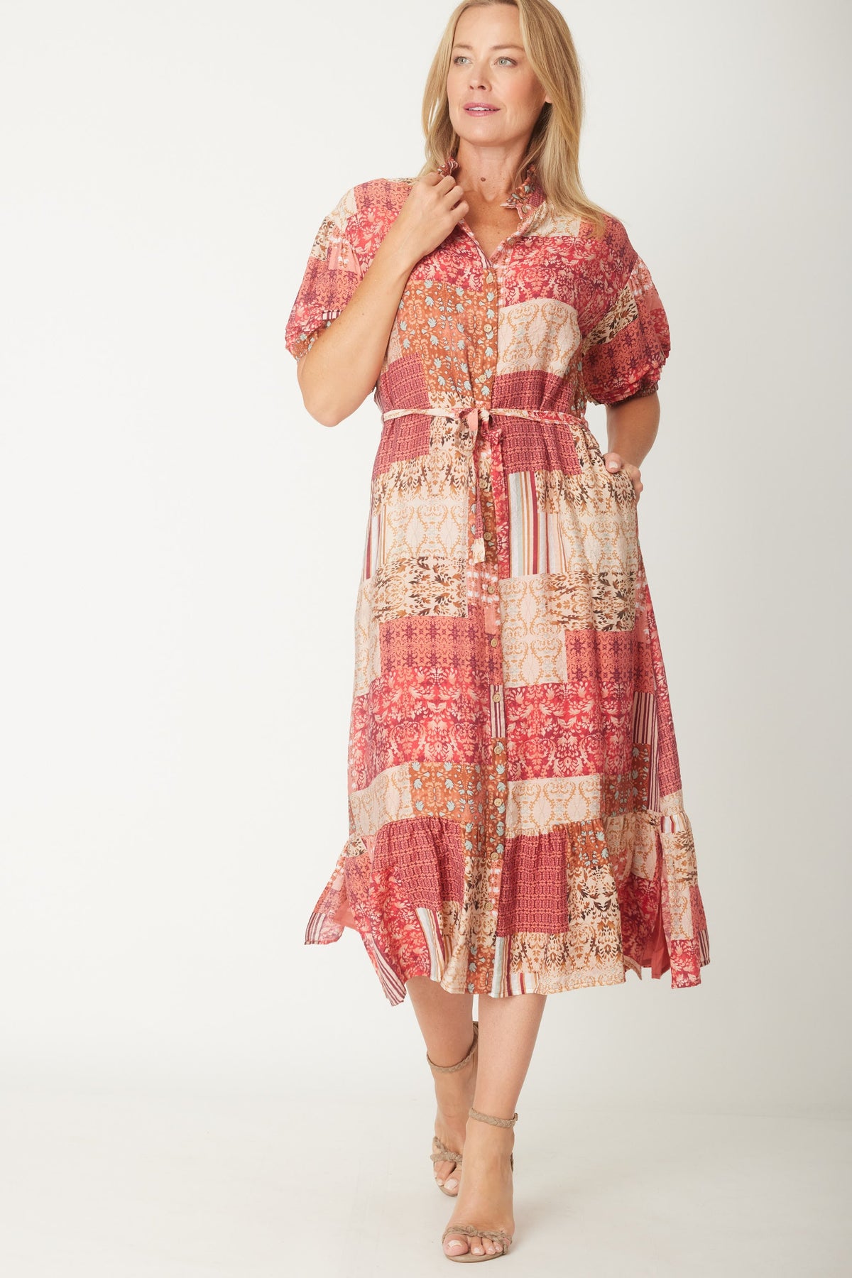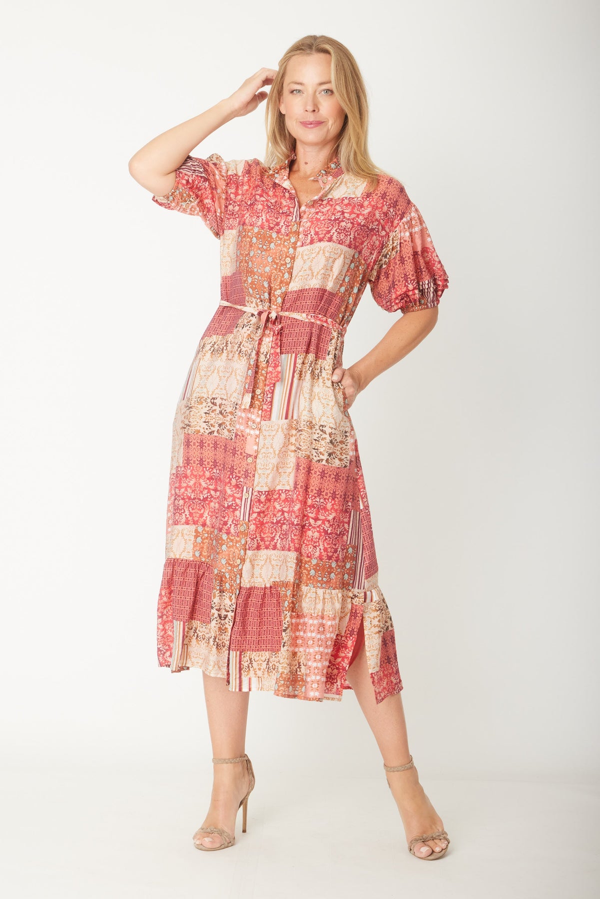 This stunning coral dress features super-soft lining and elegant elbow-length balloon sleeves, designed to keep you comfortable and stylish all day. Its classic button-up front adds a sophisticated touch, making it perfect for special occasions like spring weddings. Embrace effortless elegance and ensure all eyes are on you with this beautifully crafted dress.