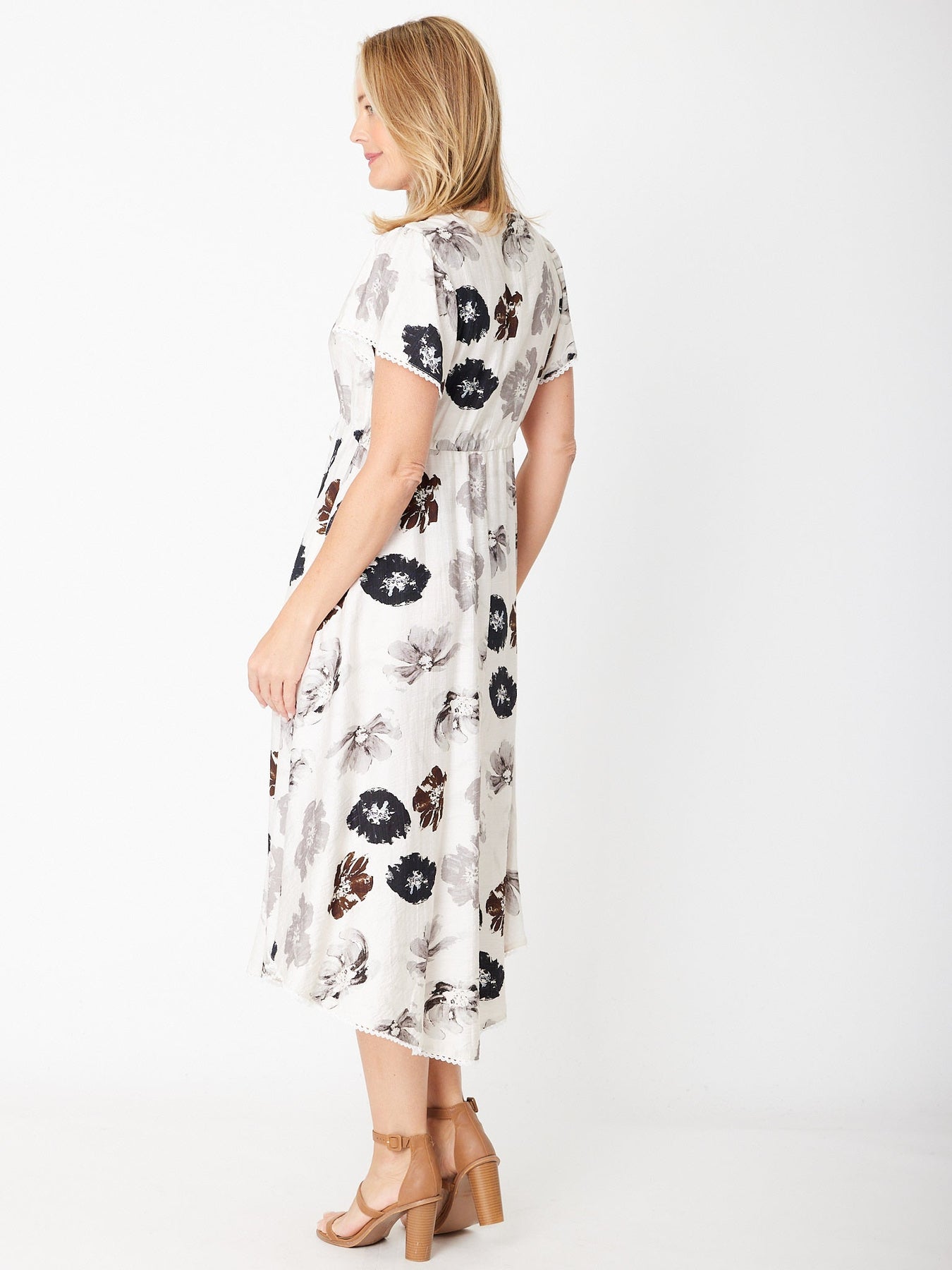This summer dress features a flattering v-neck and charming flutter sleeves, designed with a convenient drawstring waist for a perfect fit. Crafted in lovely earthy tones, it effortlessly blends comfort and style—ideal for warm days when you want to look relaxed yet polished. A versatile piece that transitions seamlessly from casual outings to summer gatherings.