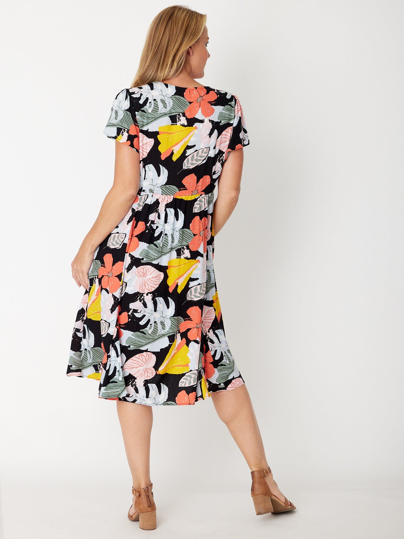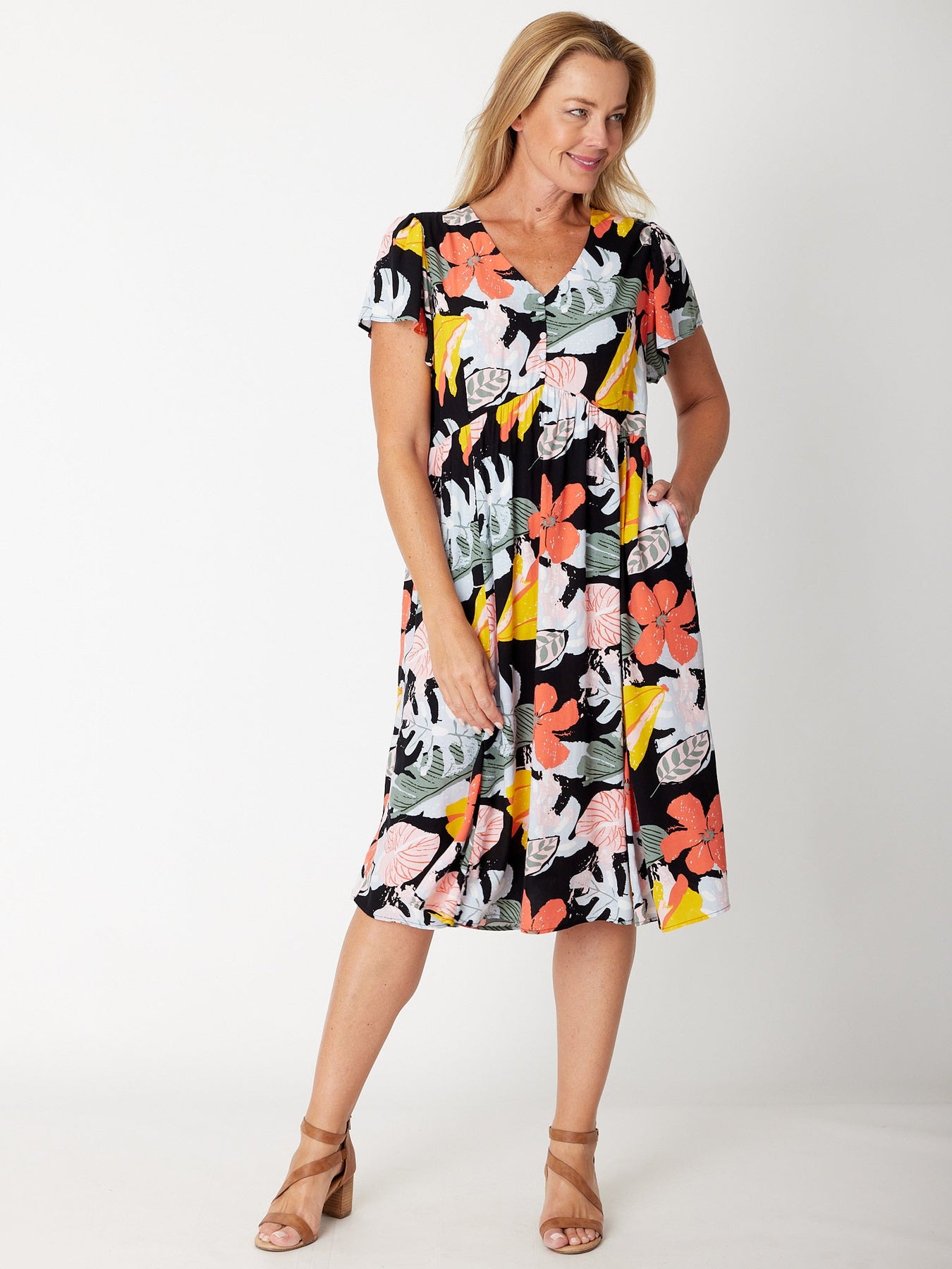 Cute print with lovely godets in the skirt for swing and flair. Great midi length for all heights. Enjoy this one xx