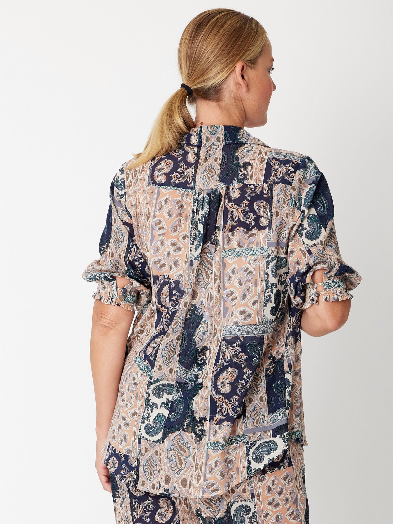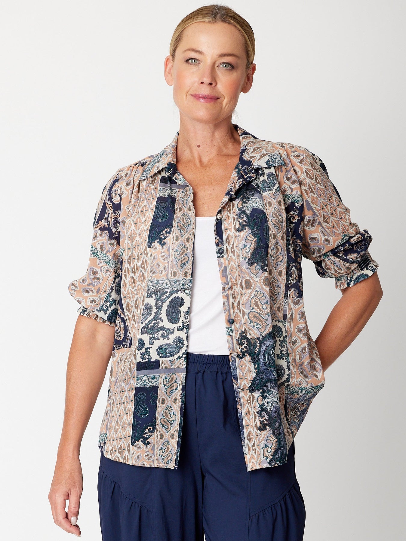 This super soft cotton shirt features a neutral paisley patchwork print, making it a versatile favourite. Its elbow-length sleeves with elastic cuffs allow you to adjust the fit for comfort and style. The flattering length pairs perfectly with the matching patchwork pant (31289) for a coordinated look that’s effortless and chic. Ideal for everyday wear with a fashionable edge.
