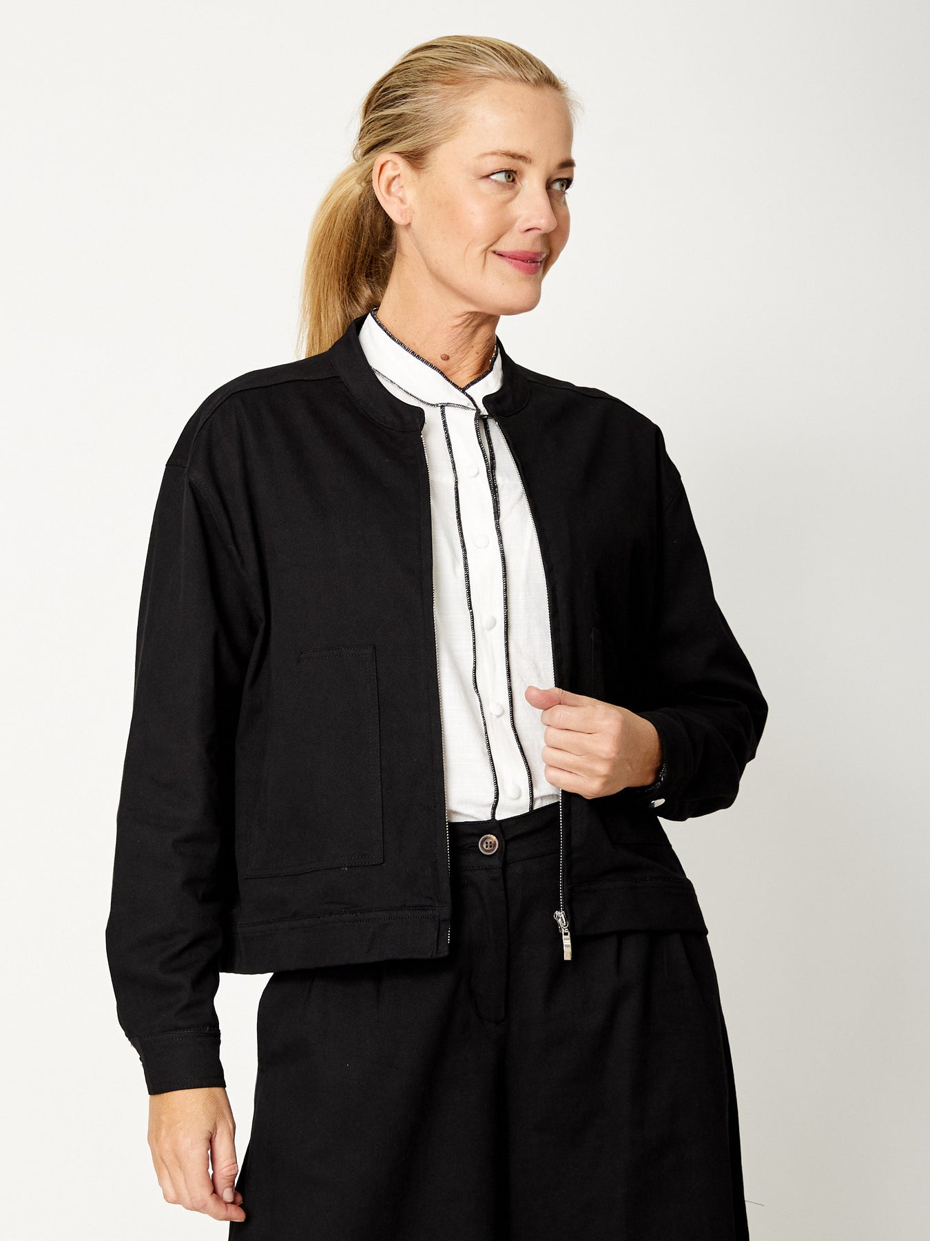 The perfect winter essential that goes anywhere. This comfortable long-sleeve zip-up jacket features great stretch cotton drill that moves with you. Practical pockets keep your hands warm, while the just-below-waistline length offers flattering coverage. Durable enough to replace your go-to denim, versatile enough for every season.