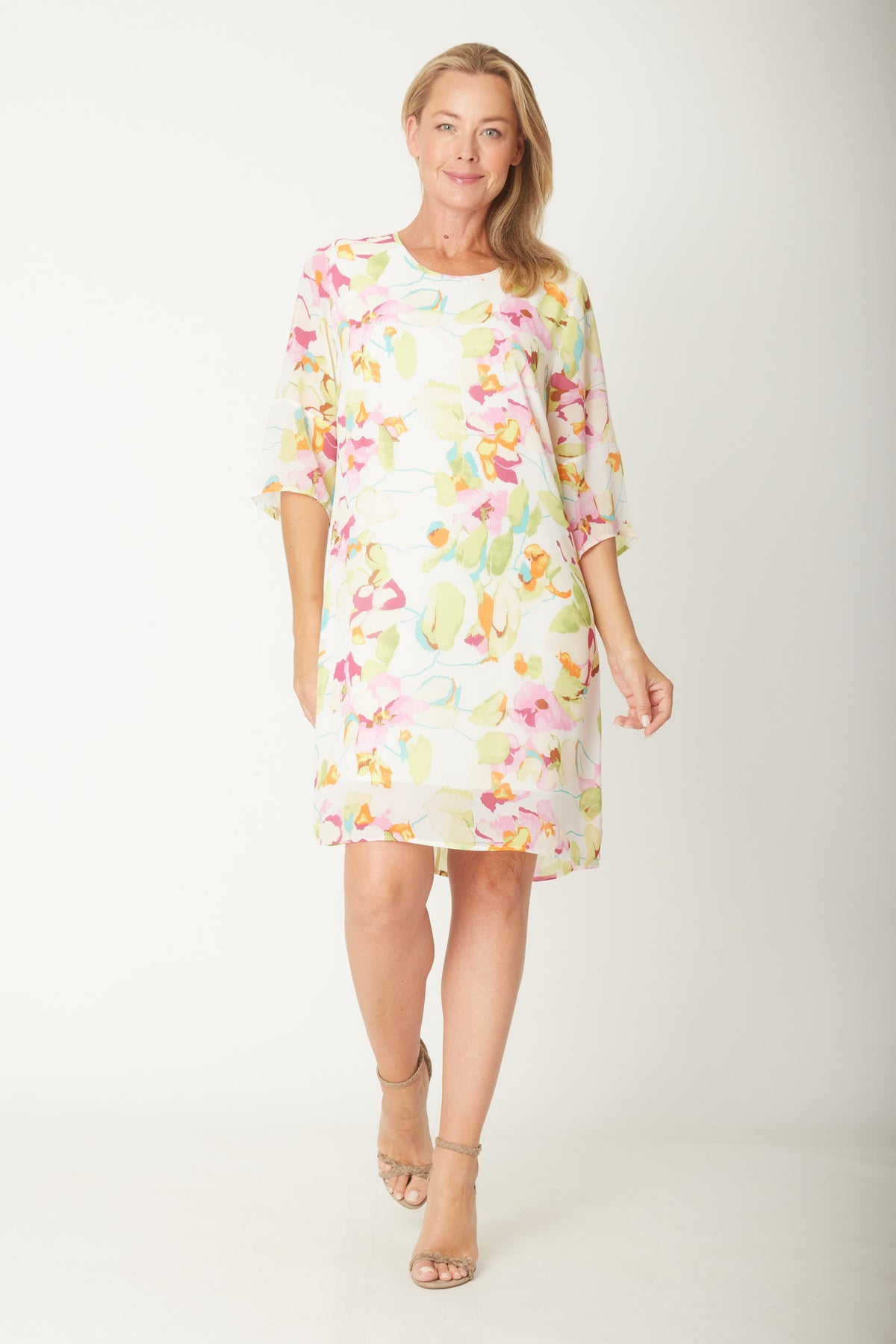 The Avery Chiffon Tunic Top effortlessly transitions from polished to casual. Crafted from lightweight chiffon with a comfortable rayon lining, this mid-sleeve piece works beautifully on its own for an elegant silhouette. Layer it with 3/4 leggings to create a relaxed, everyday look that's equally stylish. Versatile, flattering, and perfect for any occasion—one piece, endless styling possibilities.