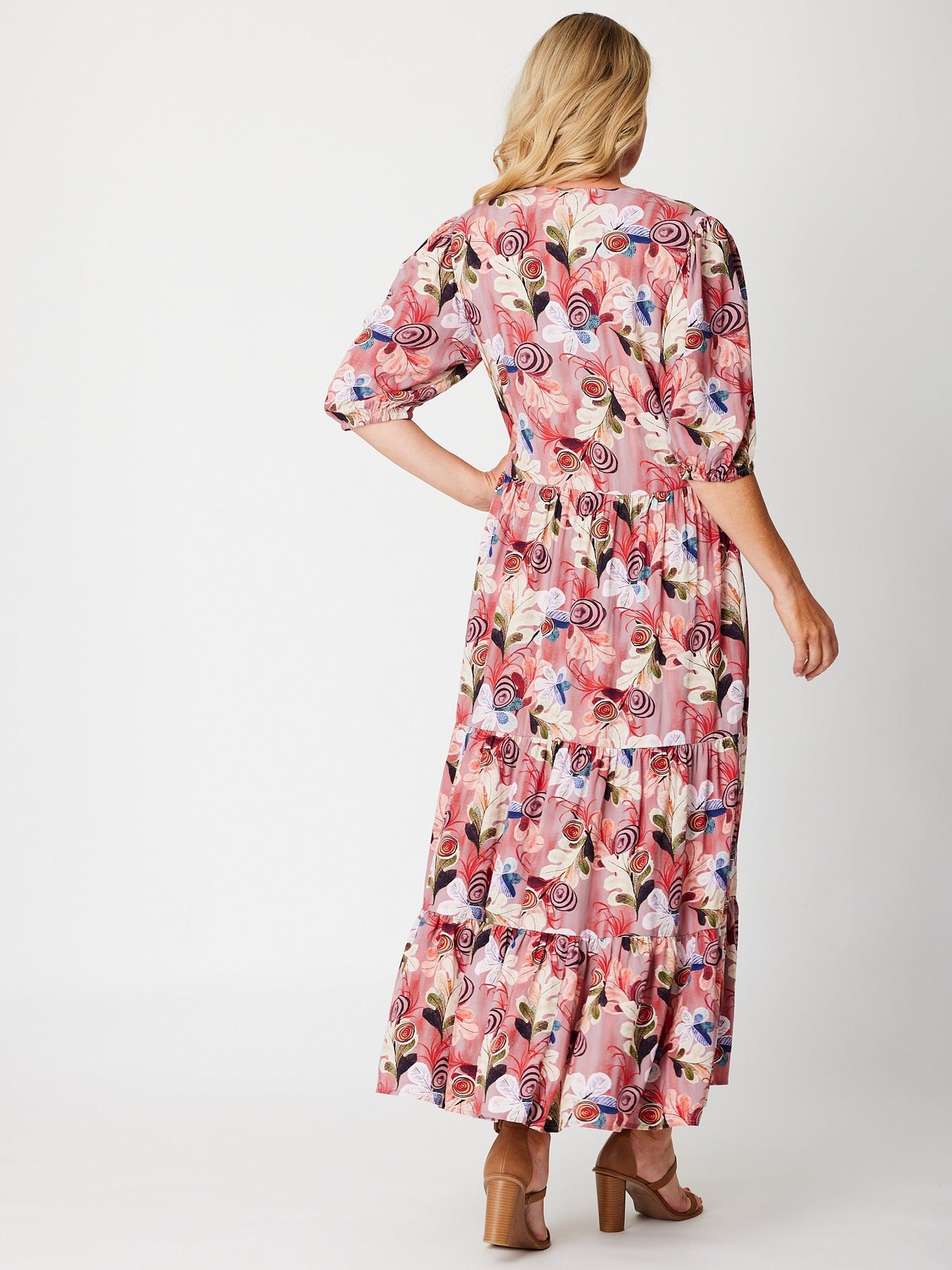 Embrace effortless elegance in this stunning Bombay Beauty Print Dress. Crafted from soft, breathable rayon, this maxi features a flattering V-neckline and relaxed hip fit that skims your silhouette beautifully. Practical pockets add everyday functionality, while elbow-length sleeves offer the perfect balance of coverage and style. The non-stretch fabric means it's best ordered to your bust size for an ideal fit. Perfect for warm weather occasions, this piece combines comfort with timeless appeal.