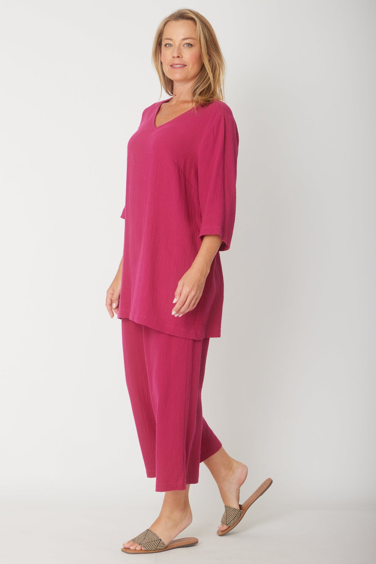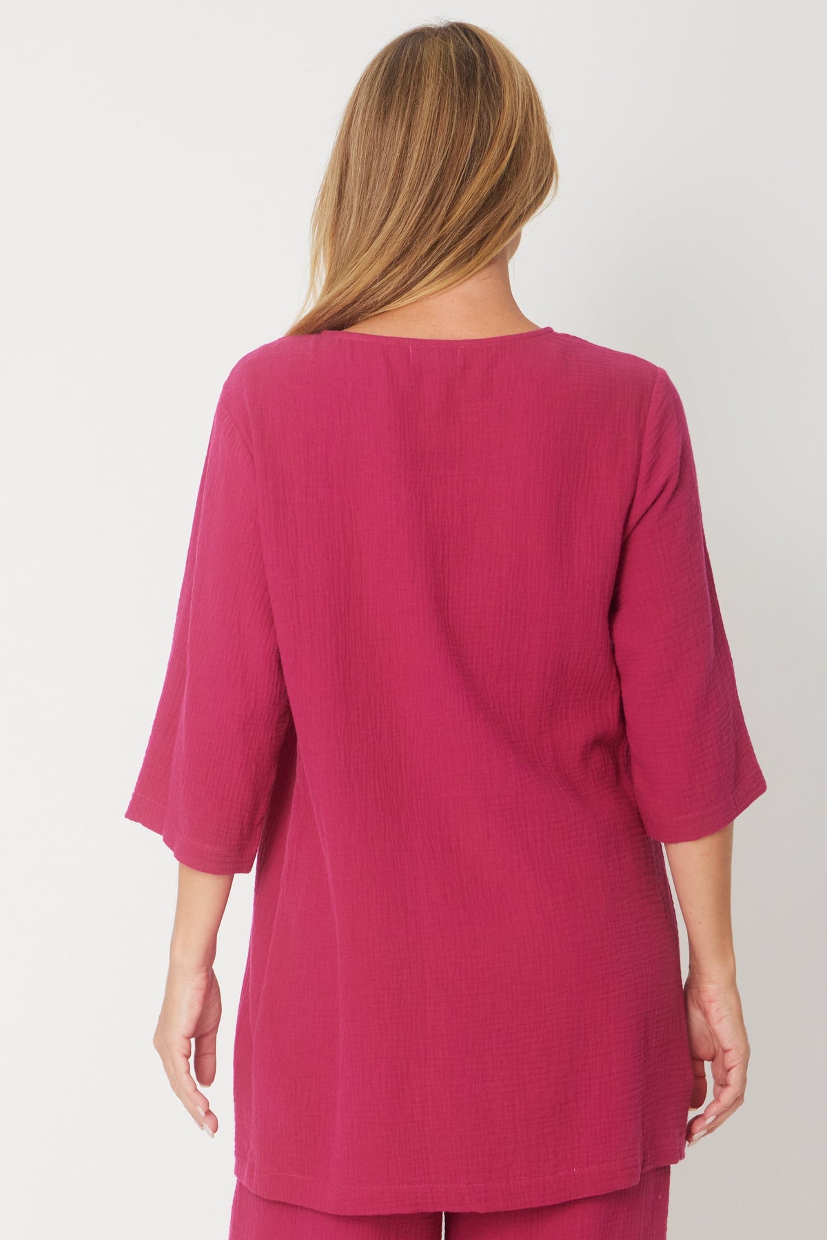 Bonded Muslin/Cheescloth Tunic - Raspberry - 31432