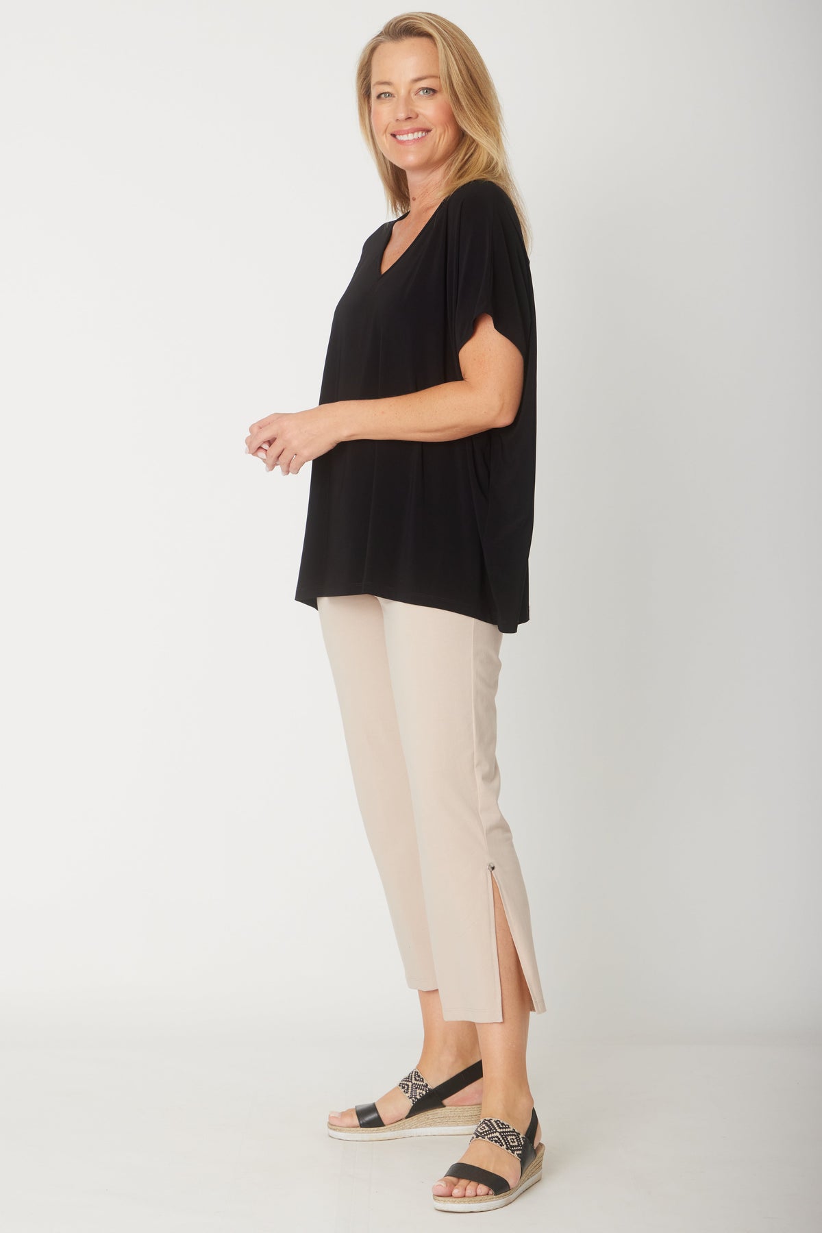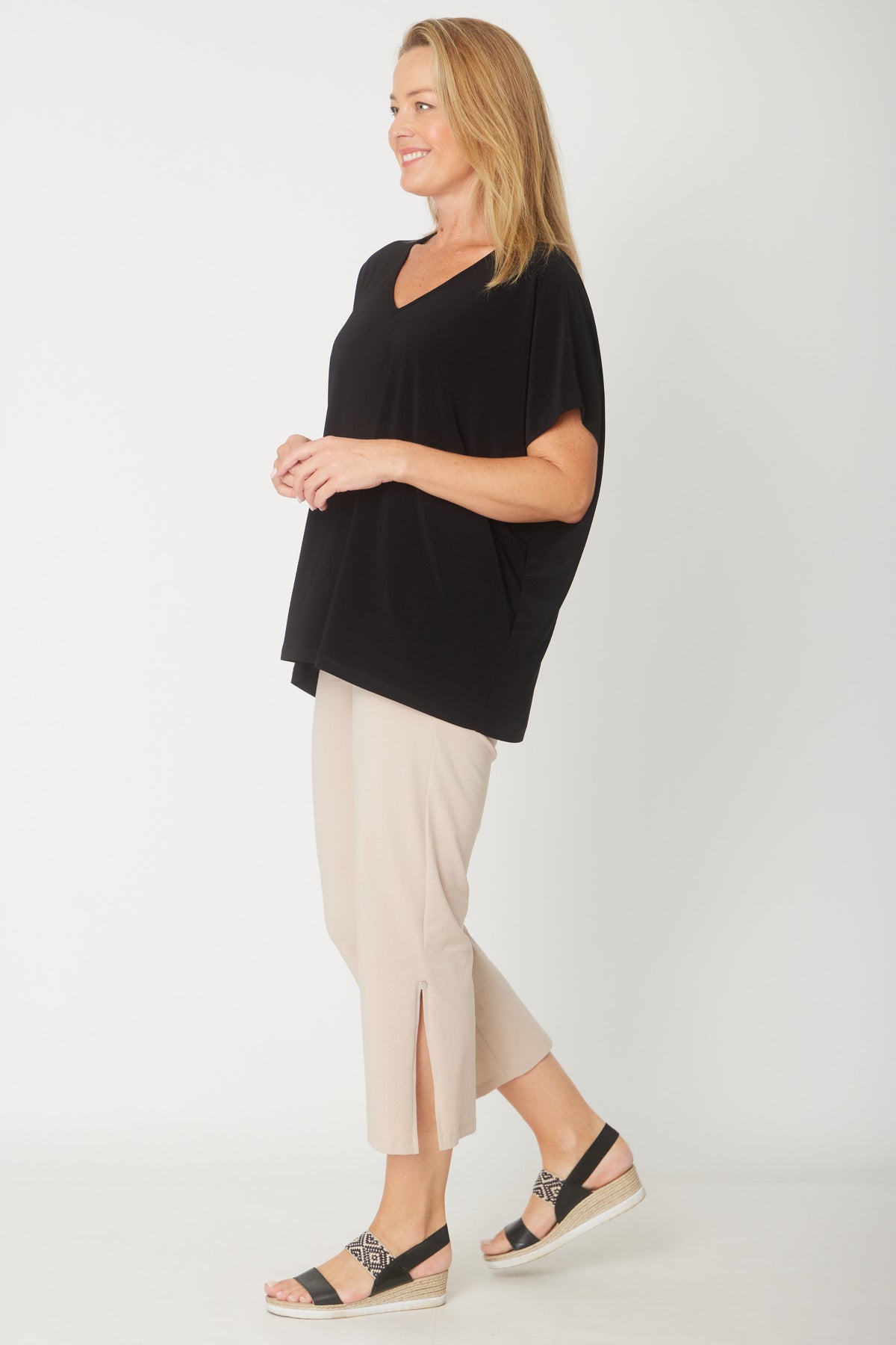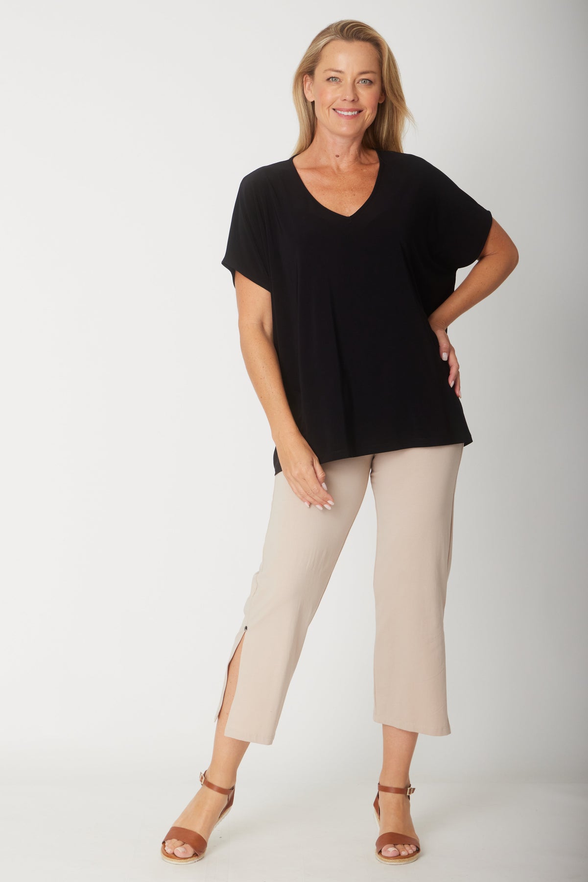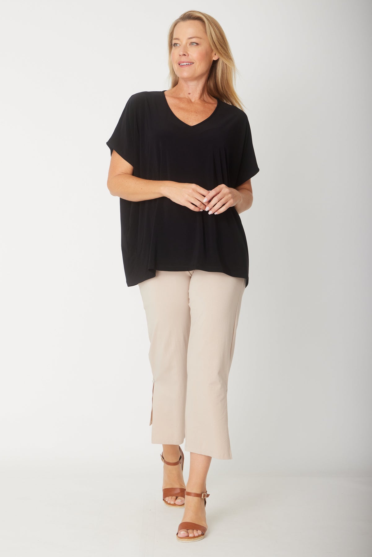 Experience effortless elegance with the Core Lux Jersey. Crafted from premium stretch jersey, this relaxed oversized top features a flattering V-neck and a longer length that drapes beautifully. Its almost kimono-inspired shape offers a sophisticated, dressy look while ensuring comfort and ease of movement. Perfect for elevating your wardrobe with a versatile piece that blends style and softness. We suggest sizing down if you are in between sizes. It is a very generous fit.