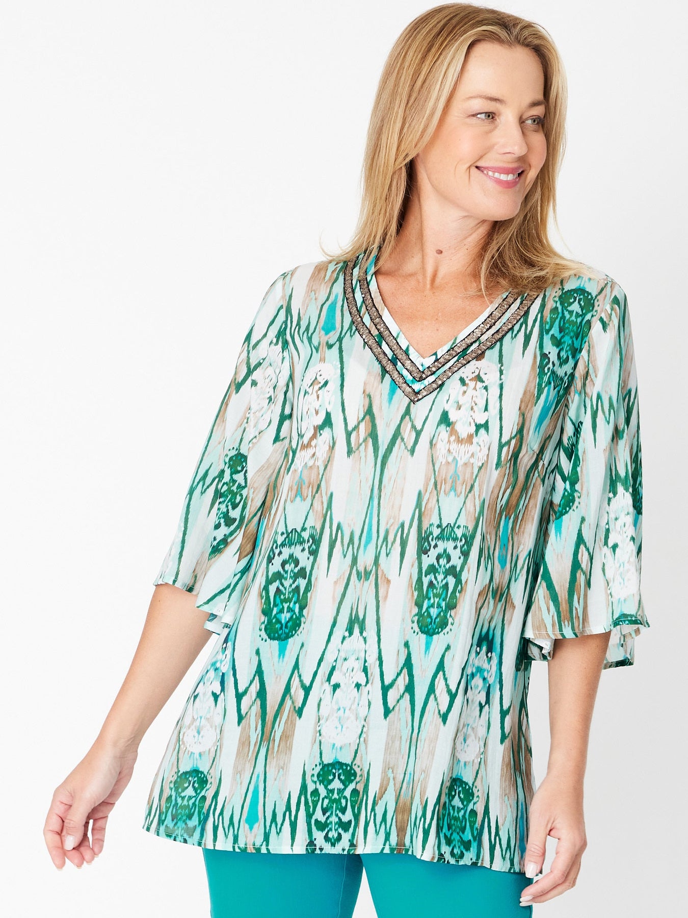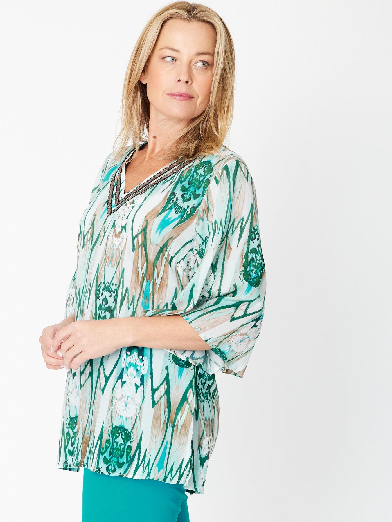Florida Kaftan Print Tunic- Turq Print - 31295