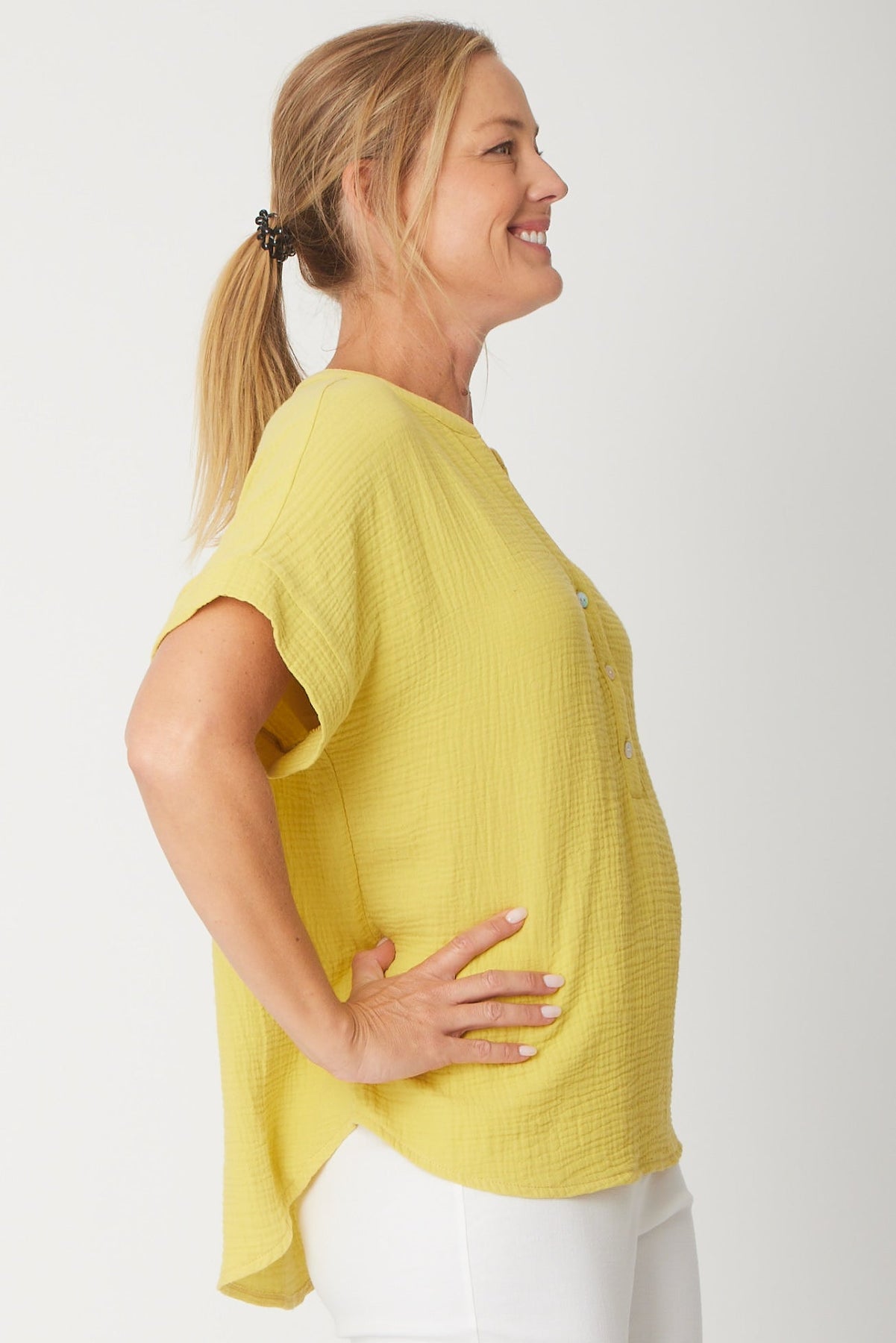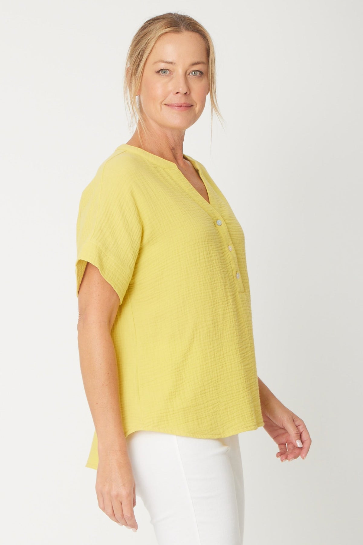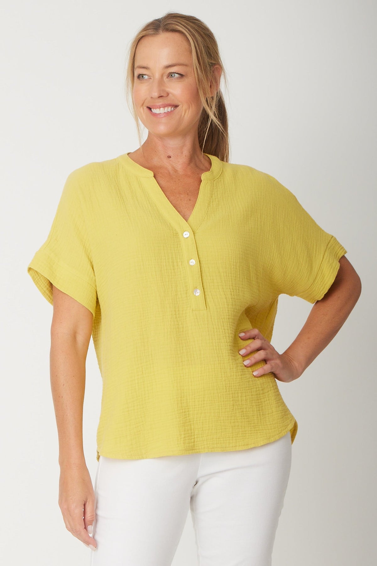Experience ultimate comfort with our Grandpa Top in vibrant colours. Crafted from our favourite bonded cotton fabric, it offers a cool, breathable feel perfect for warmer days. The relaxed fit, stylish buttons, and unique neckline combine for a casual yet polished look. Bright colours and thoughtfully designed sleeves keep you comfortable and effortlessly chic all day long.
