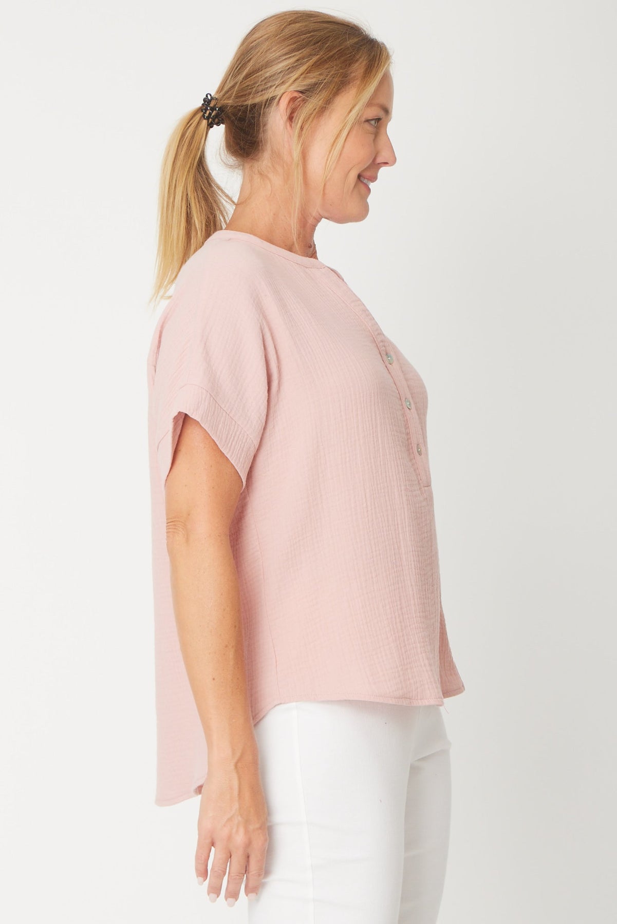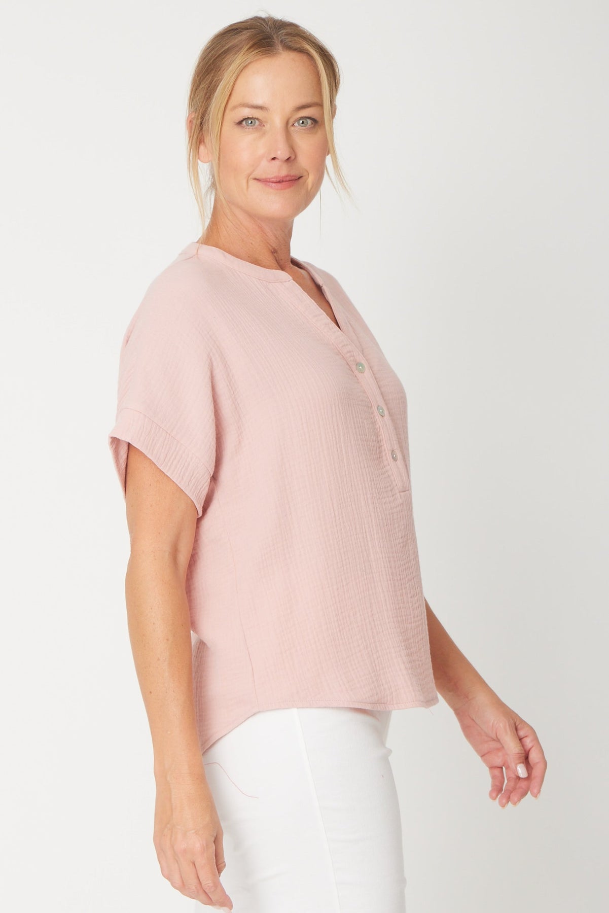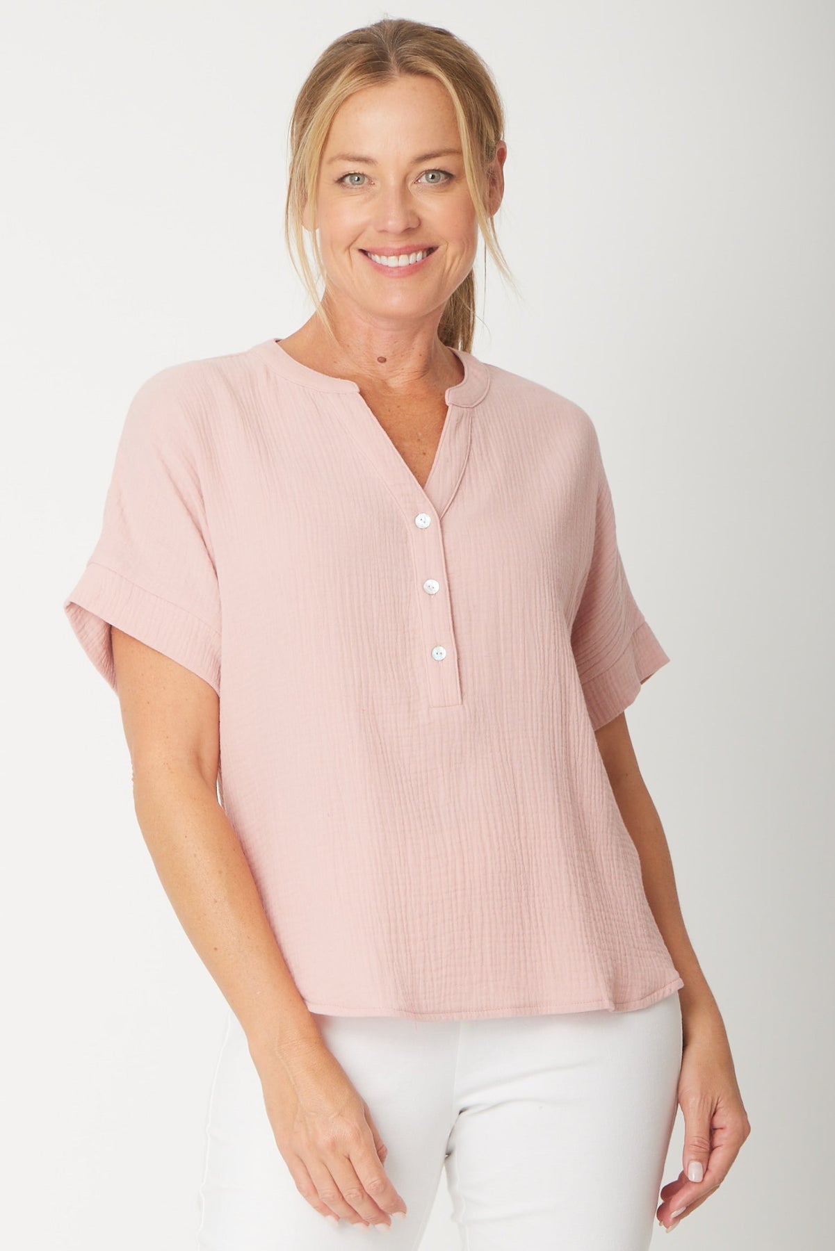 Experience ultimate comfort with our Grandpa Top in vibrant colours. Crafted from our favourite bonded cotton fabric, it offers a cool, breathable feel perfect for warmer days. The relaxed fit, stylish buttons, and unique neckline combine for a casual yet polished look. Bright colours and thoughtfully designed sleeves keep you comfortable and effortlessly chic all day long.