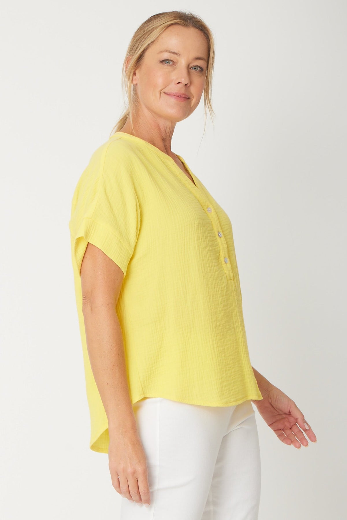 Experience ultimate comfort with our Grandpa Top in vibrant colours. Crafted from our favourite bonded cotton fabric, it offers a cool, breathable feel perfect for warmer days. The relaxed fit, stylish buttons, and unique neckline combine for a casual yet polished look. Bright colours and thoughtfully designed sleeves keep you comfortable and effortlessly chic all day long.