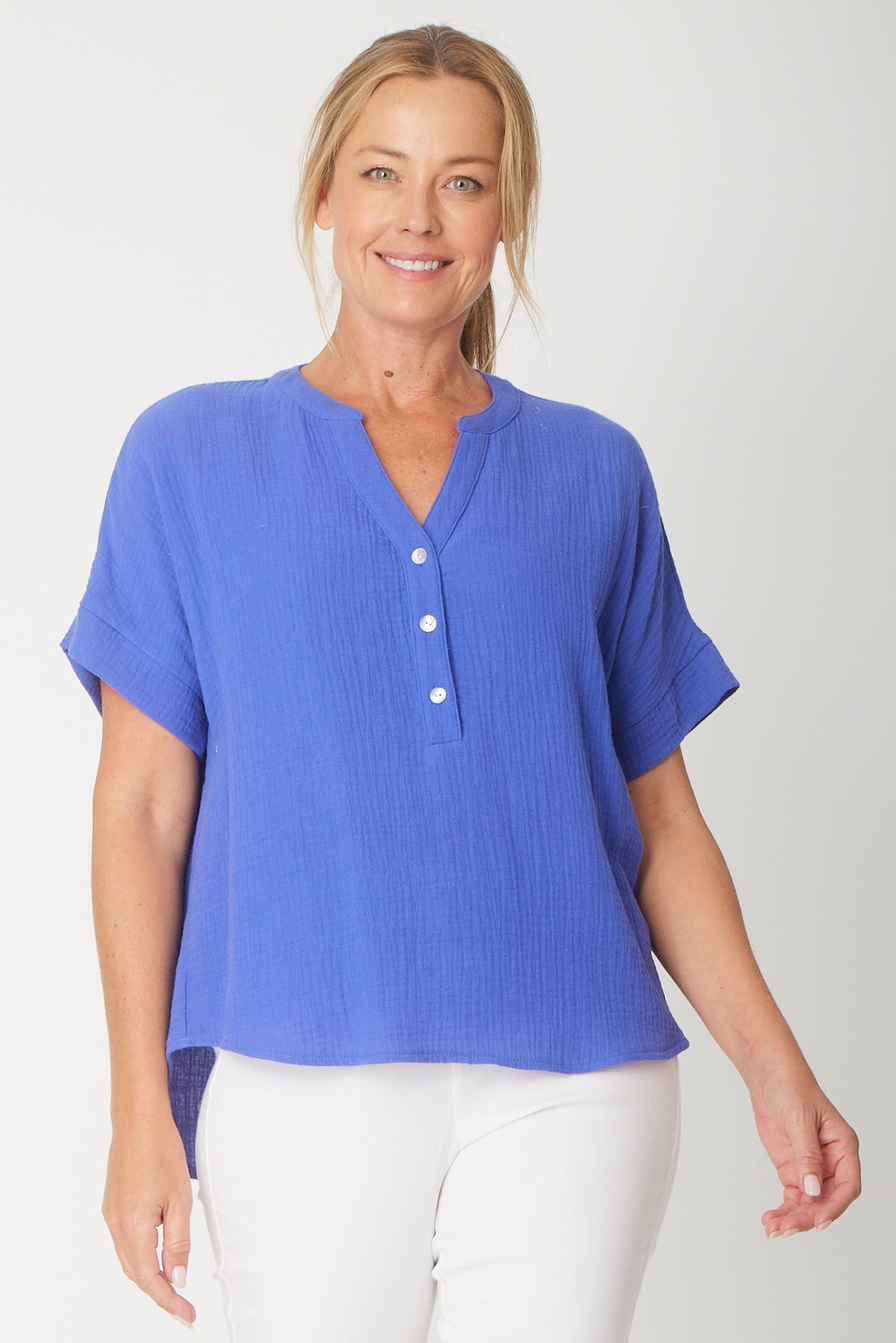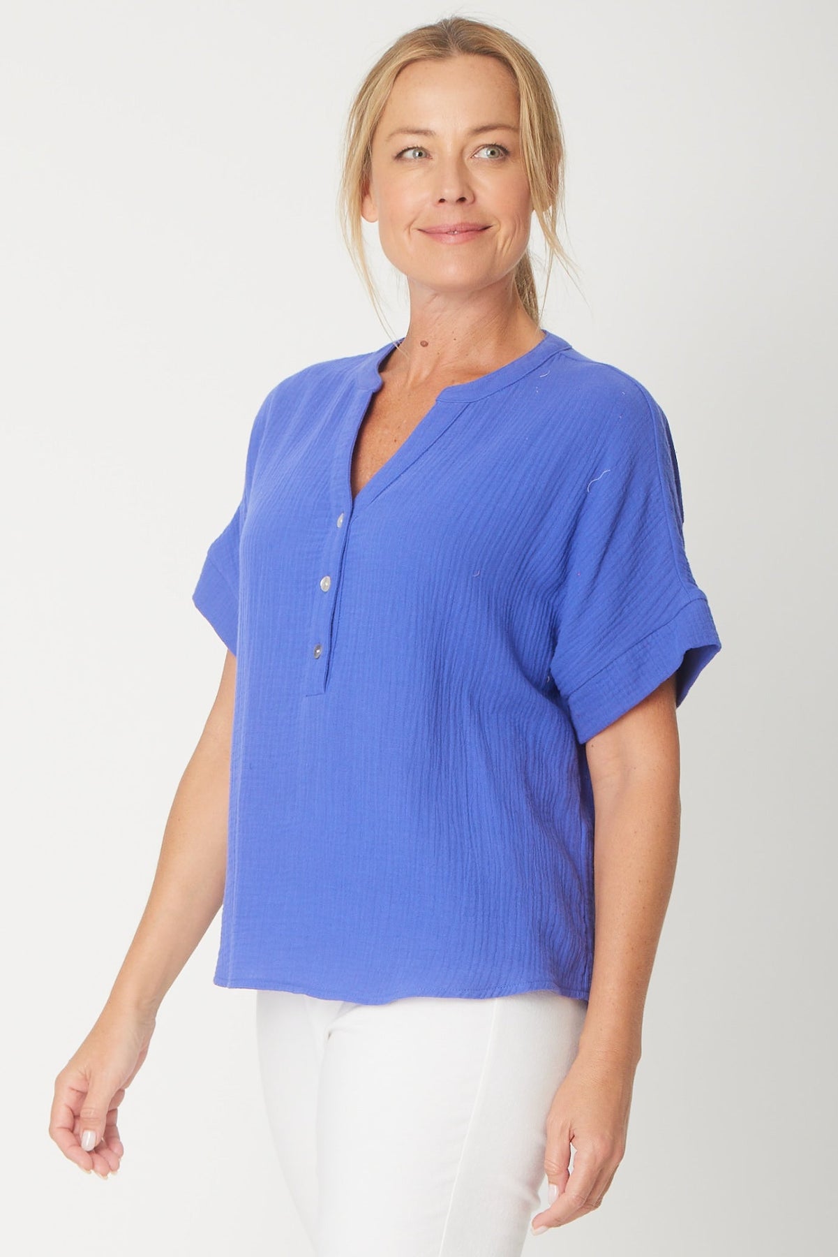 Experience ultimate comfort with our Grandpa Top in vibrant colours. Crafted from our favourite bonded cotton fabric, it offers a cool, breathable feel perfect for warmer days. The relaxed fit, stylish buttons, and unique neckline combine for a casual yet polished look. Bright colours and thoughtfully designed sleeves keep you comfortable and effortlessly chic all day long.