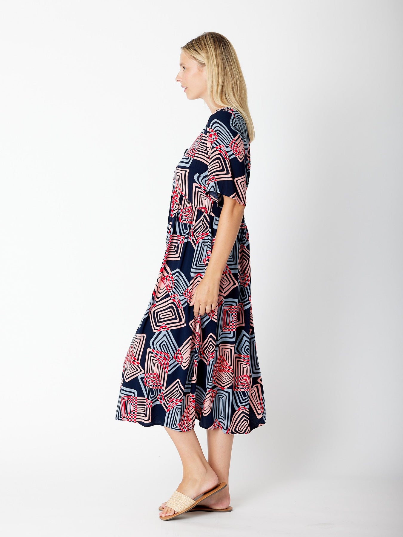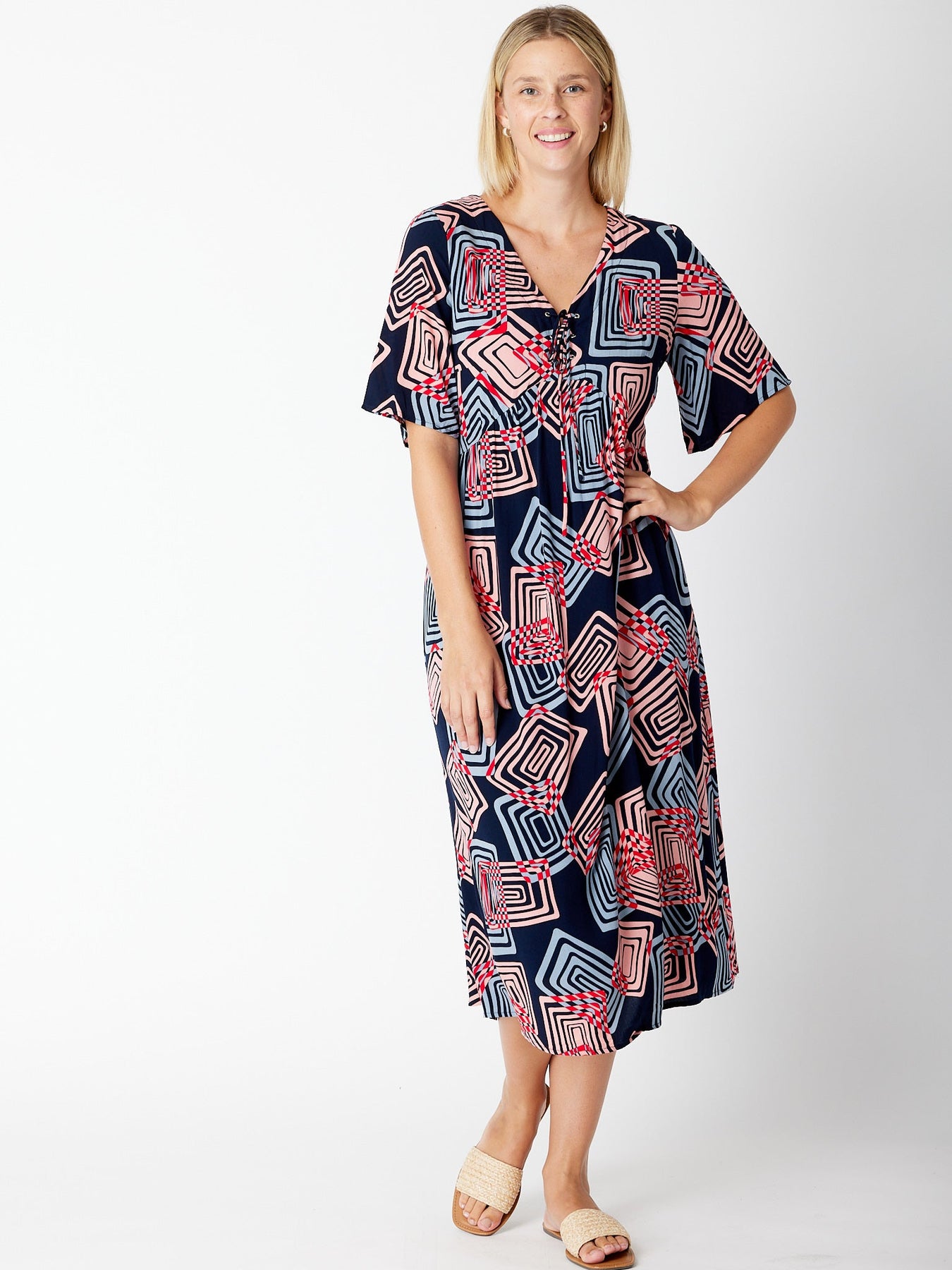 Elevate your wardrobe with this charming Lace Up Dress in Pink. The striking eyelet lace-up neckline adds a touch of sophistication, while mid sleeves provide the perfect balance of coverage and style. Cut from a non-stretch, opaque fabric that drapes beautifully, this midi dress delivers a relaxed yet polished silhouette suitable for casual outings, weekend gatherings, or dressed-up occasions. Versatile and effortlessly chic, it's the piece you'll reach for again and again.