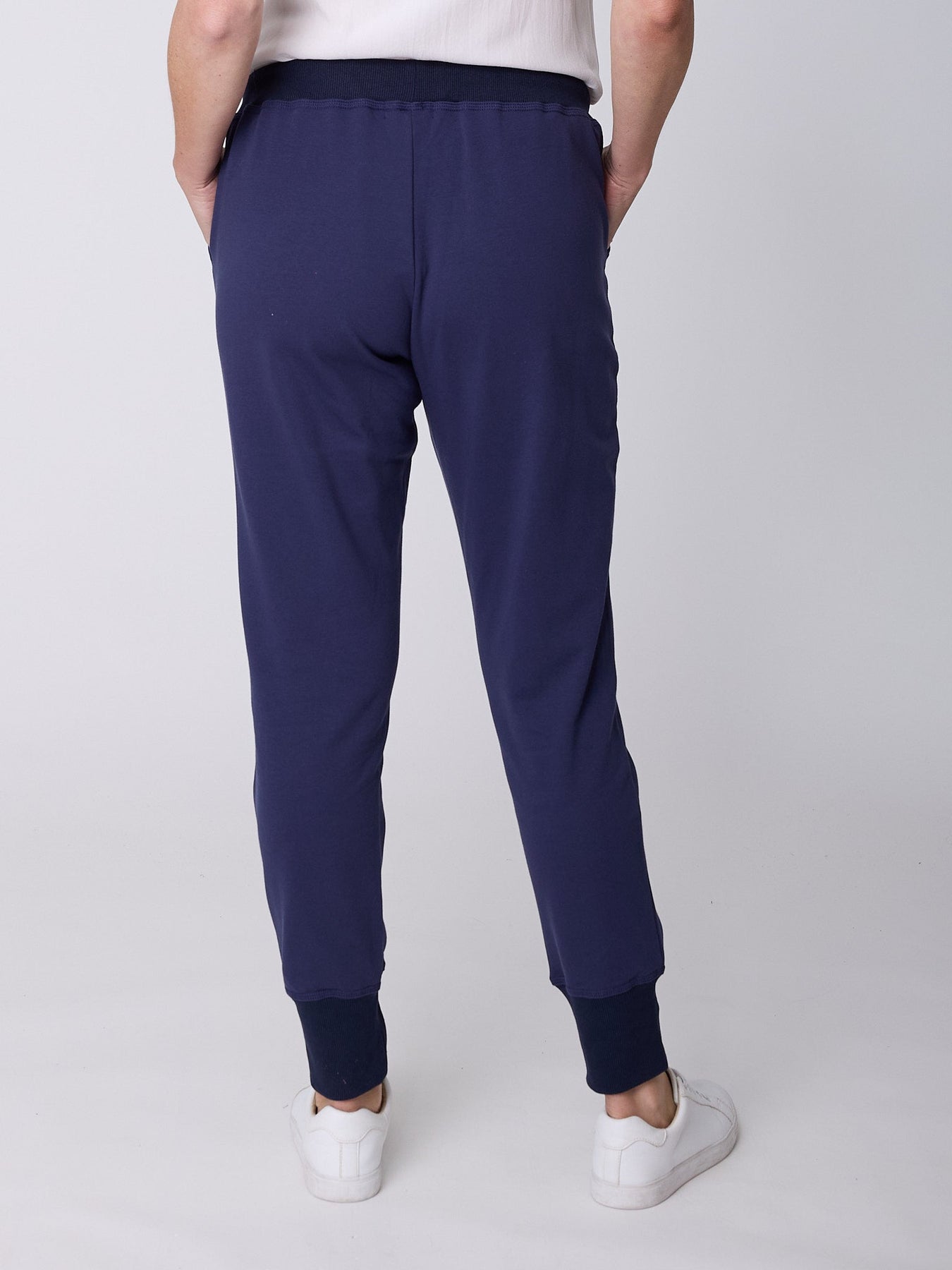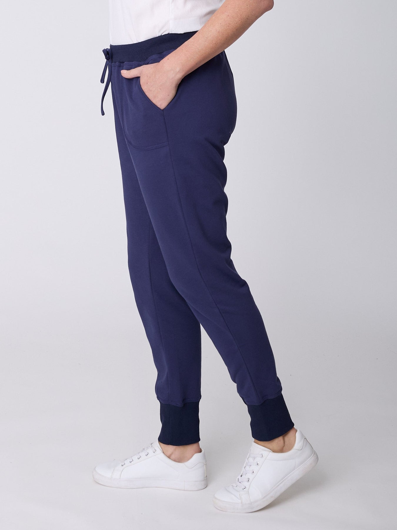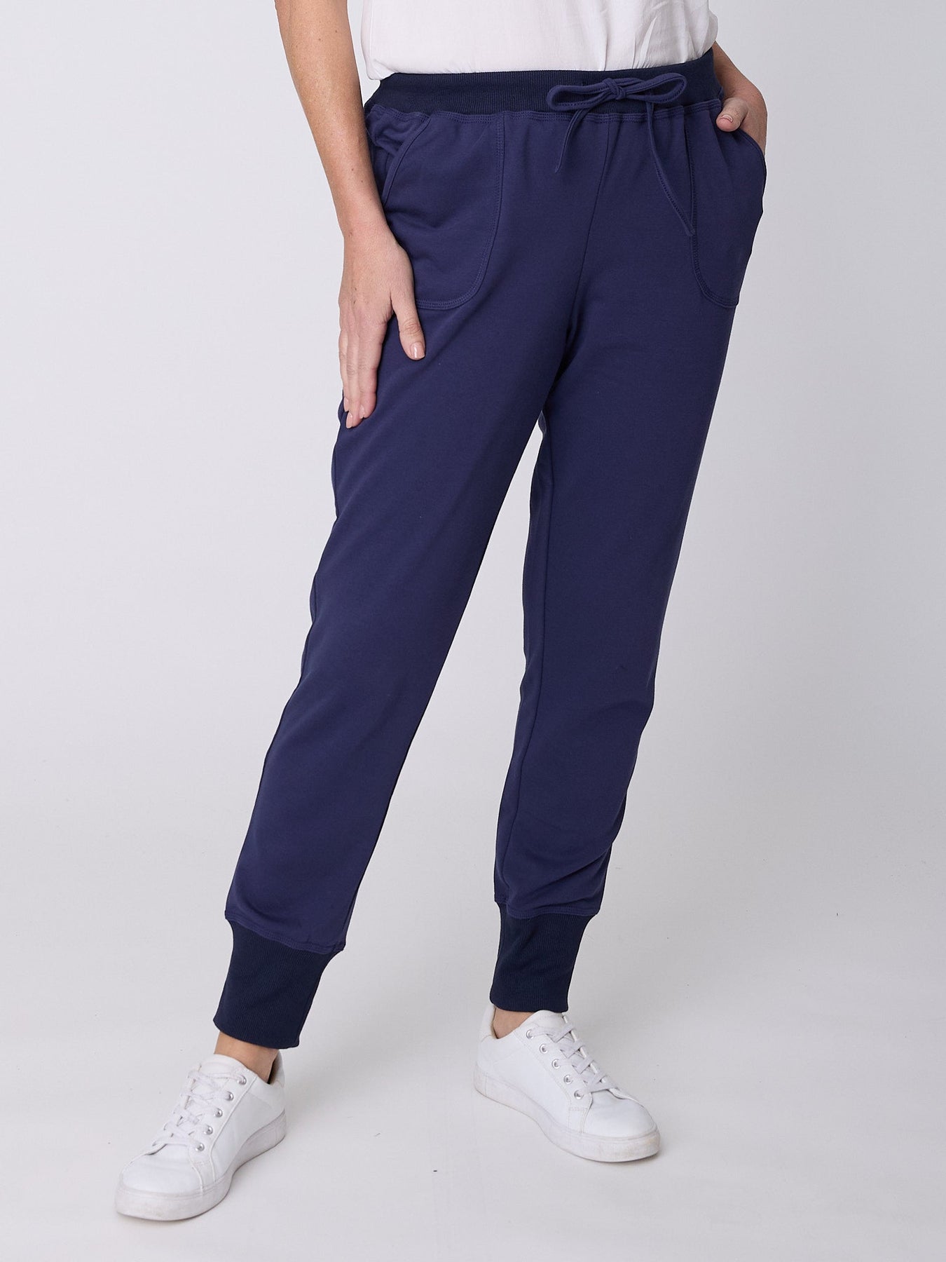 Experience comfort and style with the Life Style Pant in Navy. These fleecy lined track pants feature an elastic ribbed waist with a drawstring for a secure fit and ribbed cuffs that enhance their slim, tapered silhouette. Practical side pockets add convenience, making them perfect for active days or relaxed outings. Stay warm and move freely without compromising on fashion.