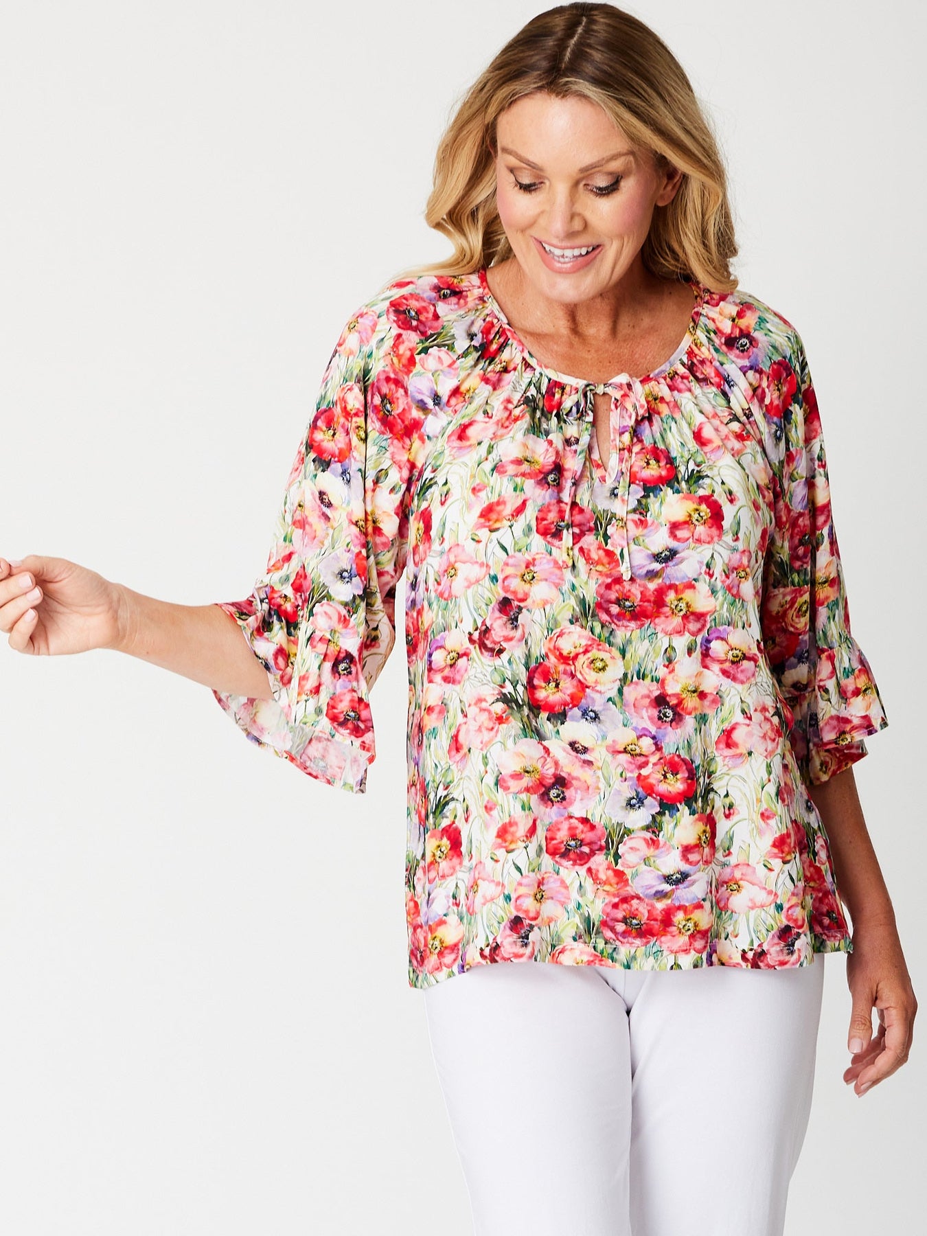 Discover effortless elegance with the Lucy Cool Top. This versatile piece features a flattering V-neckline with delicate ties that add refined detail, while elbow-length sleeves finished with a charming frill hemline create understated sophistication. Crafted from breathable rayon, it's the perfect weight for year-round wear. The hip-length cut pairs beautifully with skirts or pants, making it an essential addition to any wardrobe. Elevate your everyday style with timeless design that works as hard as you do.