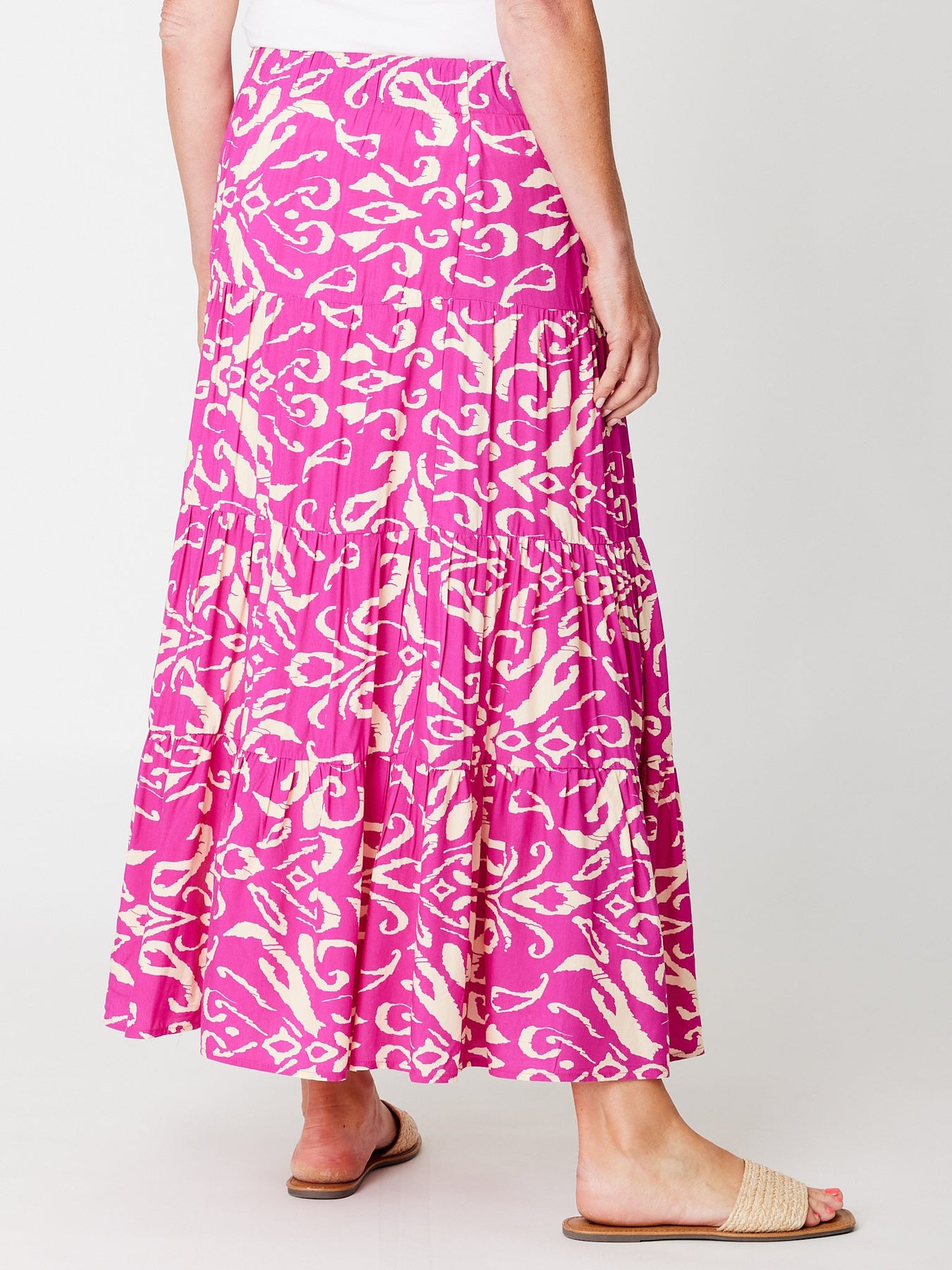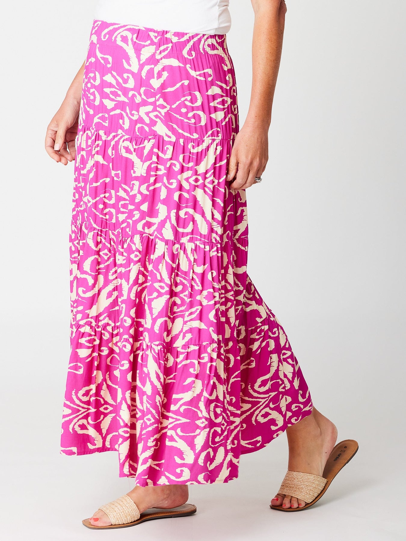 Experience effortless elegance with the Oakley Skirt. This feminine tiered maxi skirt features a comfortable pull-on elastic waist and is crafted from soft, breathable rayon that keeps you cool all day. Whether paired with heels, slides, or sneakers, it’s the perfect versatile piece to elevate your style with ease.