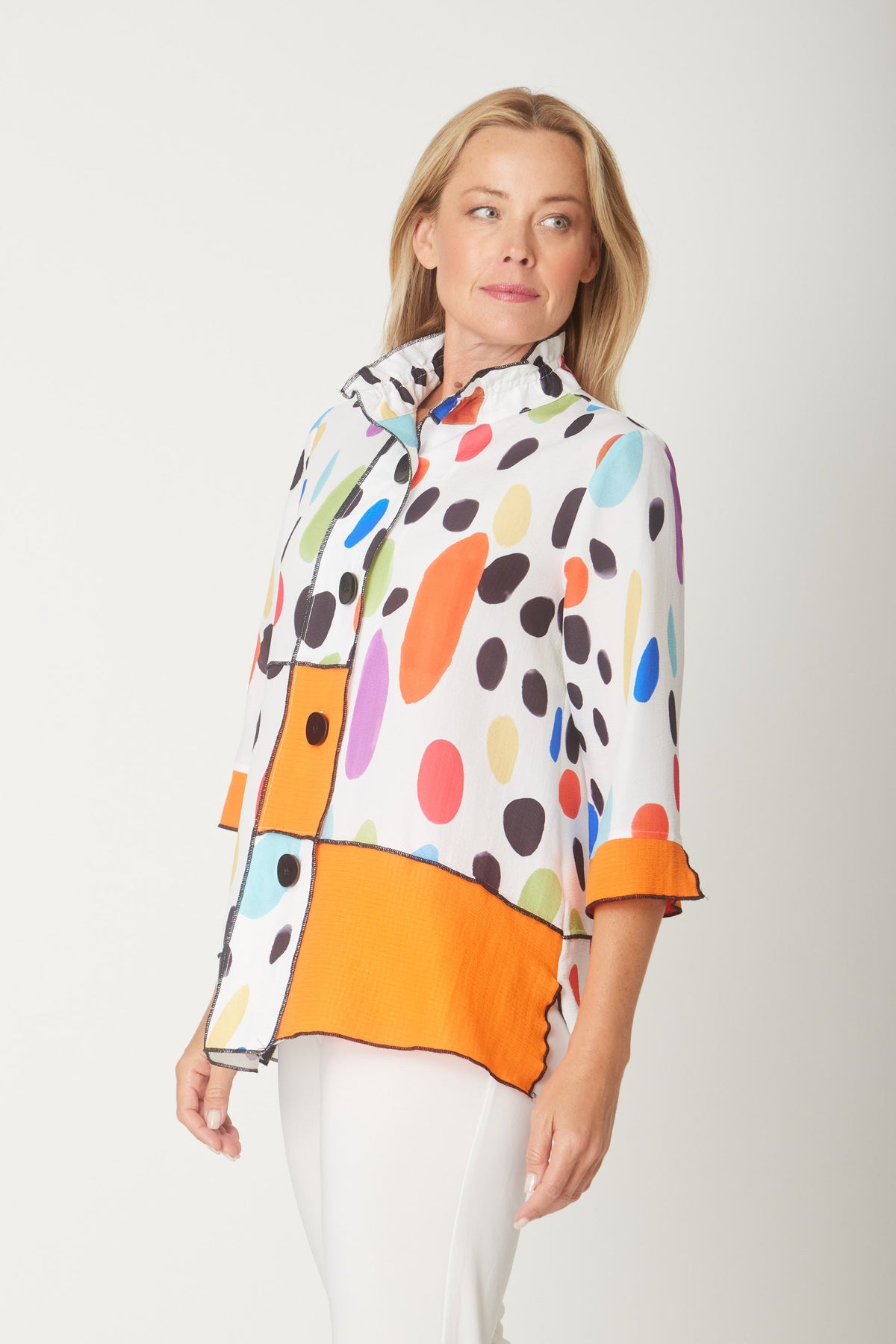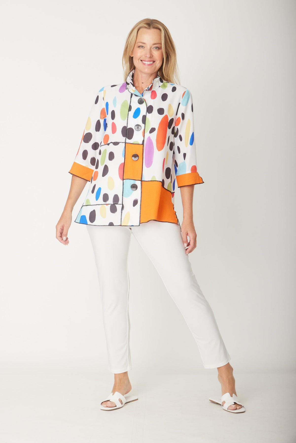 Elevate your wardrobe with this striking overlocked ORANGE shirt that seamlessly blends bold block patterns with eye-catching prints. The button-through design offers effortless styling versatility, while the distinctive 3/4 flutted sleeves add a contemporary flair that sets this piece apart. Perfect for making a confident statement, whether you're dressing up for work or creating a standout casual look. The quality overlocked finish ensures durability and a polished appearance that lasts.