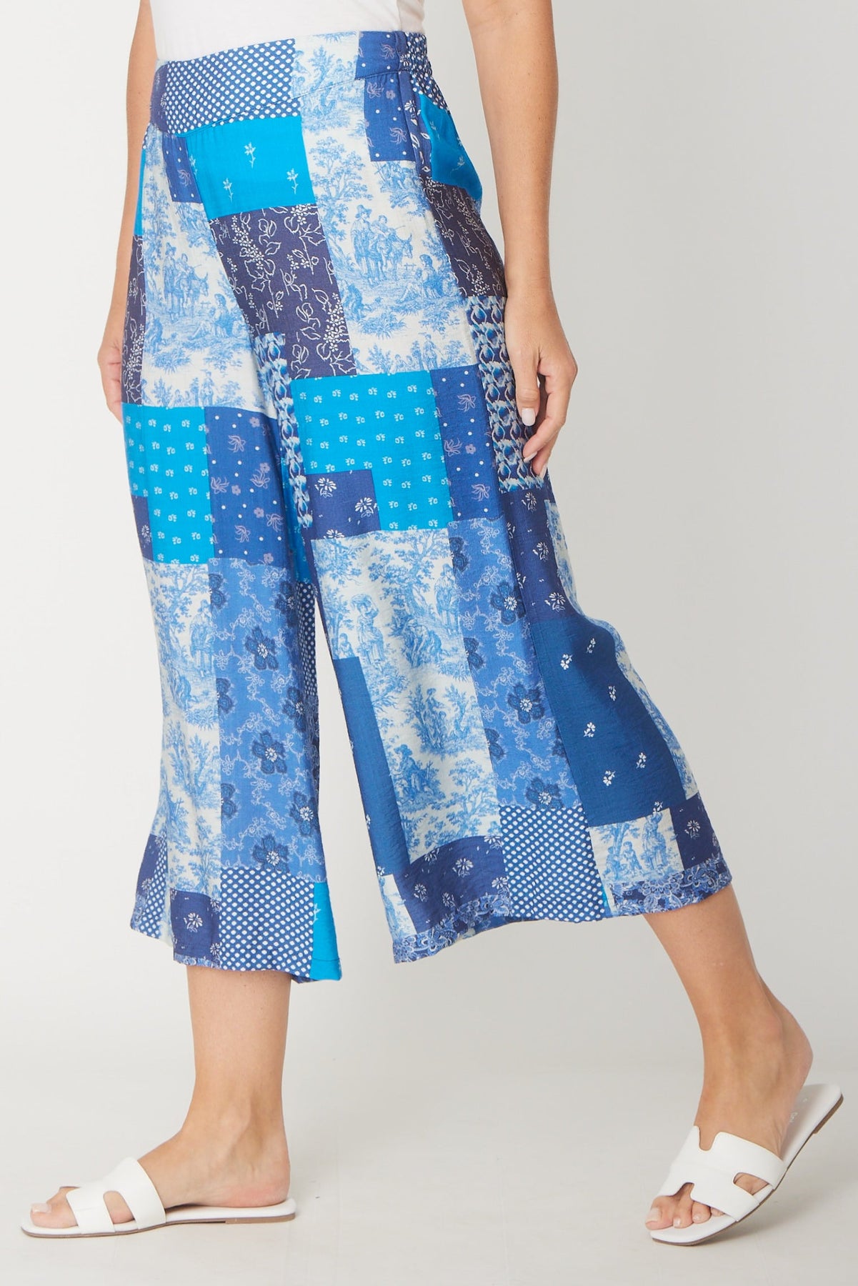 Elevate your wardrobe with the Patchwork Pant. These wide-leg pants feature a sleek flat front and an elastic waistband, ensuring a polished look with all-day comfort. Made from breathable, non-stretch rayon, they offer a graceful 7/8 length that moves effortlessly. Perfect for adding a sophisticated, contemporary touch to your style, these pants fit true to size for a confident, flattering silhouette.