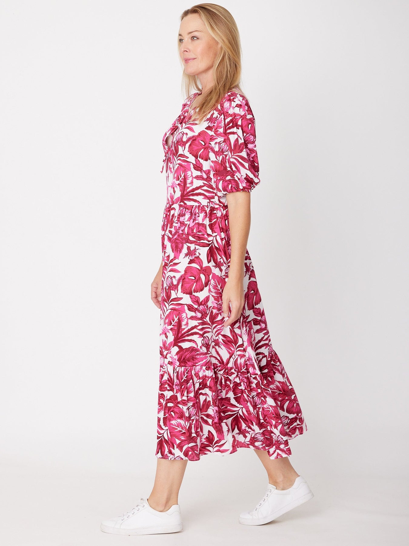 Escape the ordinary with this captivating elbow-length prairie style dress. Crafted from cool, breathable rayon, its flattering drop waist silhouette creates an effortlessly chic look. The distinctive keyhole neckline adds a touch of allure, while the maxi length ensures versatile styling options. Perfect for warm-weather occasions when you want to make a statement without sacrificing comfort.