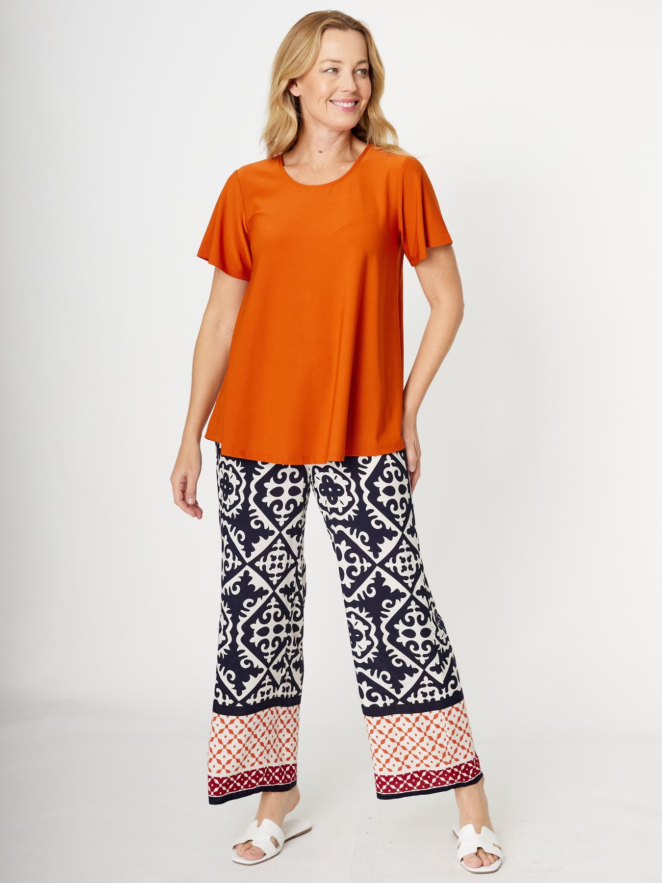 Swing Scoop Jersey Flutter Sleeve Top - Pumpkin - 31912