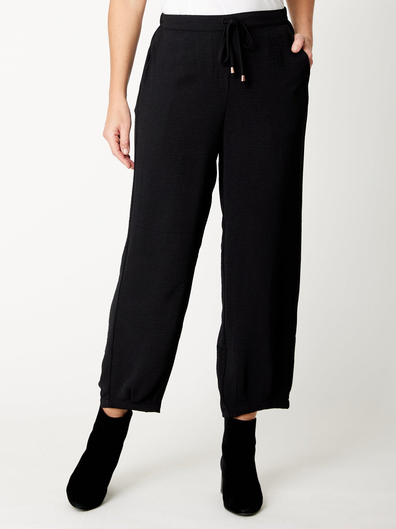 Discover your new wardrobe essential with the Venus Pant. This mechanical stretch anklet-length pant combines comfort with style, featuring a pull-on flat front with functional drawstring and elastic back for effortless wear. The relaxed fit sits true to the waist with a cute, non-restrictive cuff that skims the ankle beautifully. Perfect for everyday versatility, style with boots in the winter a slide, sandal or sneaker, the mechanical stretch in the fabric moves with you while maintaining its shape. A true best friend in your wardrobe.