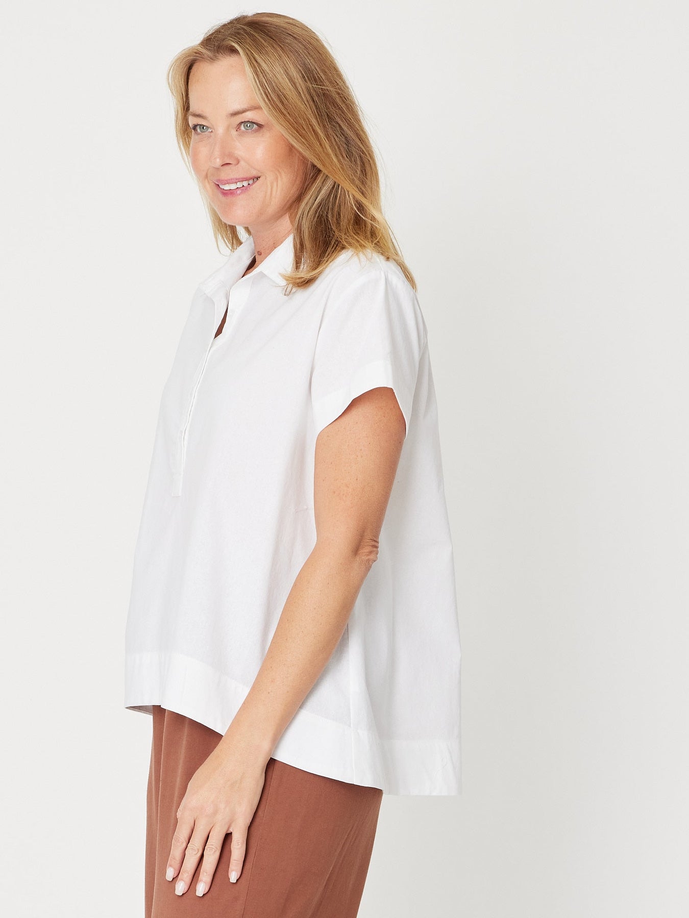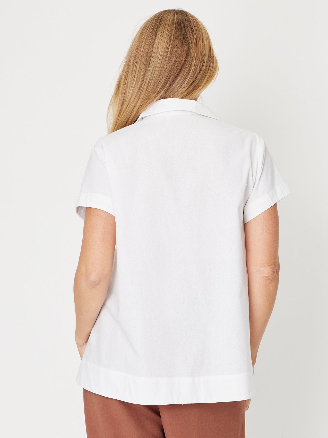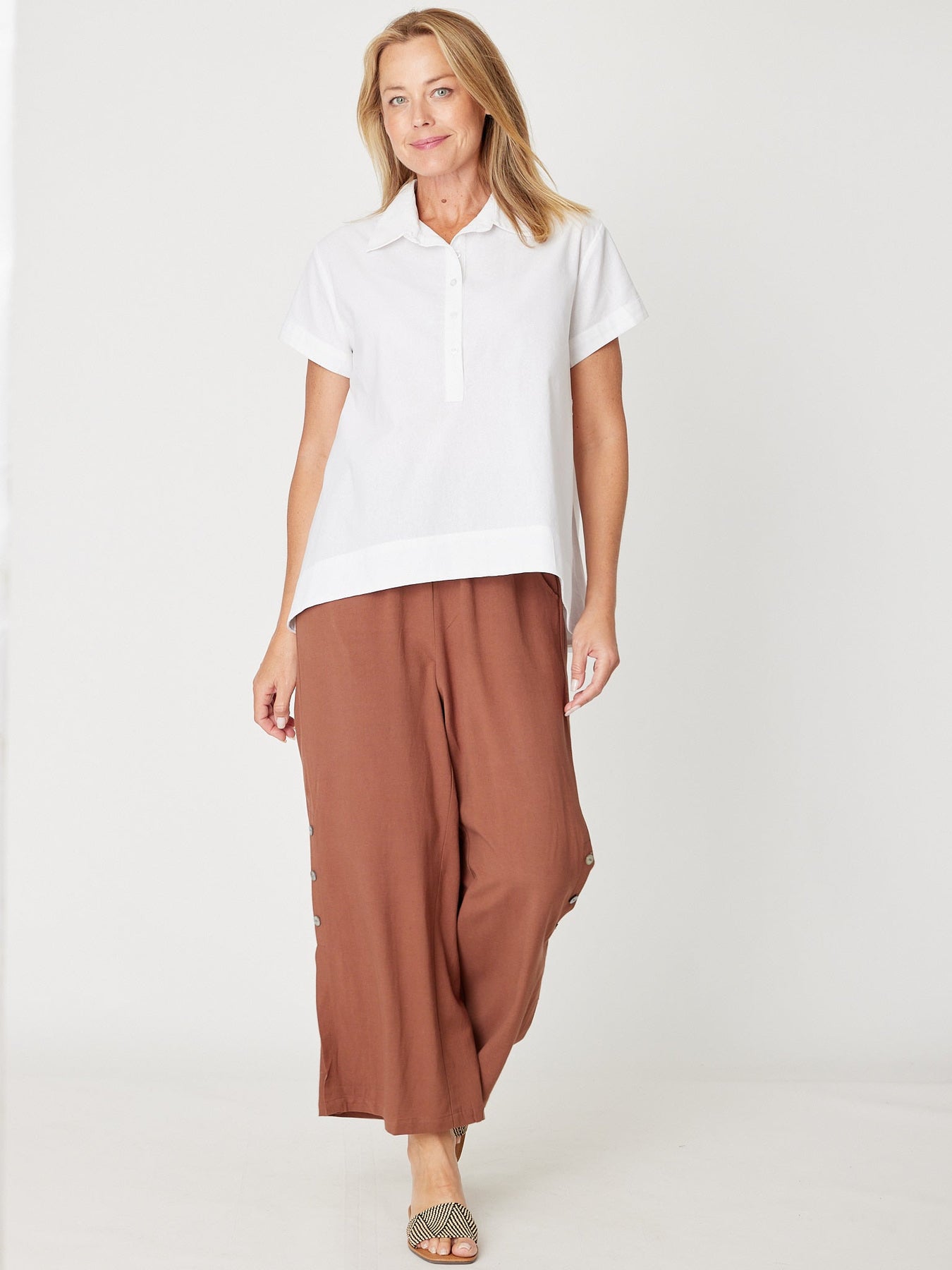 The Vicky Linen Top in White is your go-to piece for effortless everyday style. Featuring a timeless classic collar and button-front closure, this relaxed-fit top offers comfort without compromising on sophistication. Cap sleeves provide a flattering silhouette, while the subtle hi-low hemline adds contemporary flair. Perfect for dressing up or down, this versatile pink top transitions seamlessly from casual outings to weekend gatherings. Invest in a wardrobe essential that delivers both style and wearability.